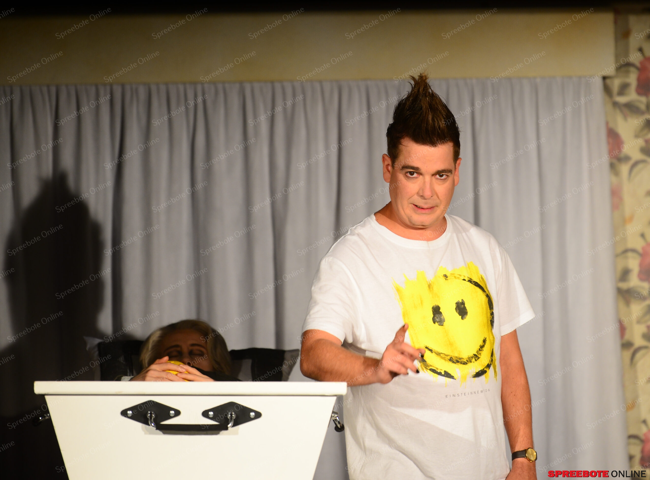 Das Gastspiel der Uckermärkischen Bühnen Schwedt war zu Gast in der Kulturfabrik in Fürstenwaldemit ihrer Komödie „Beute“. Eine herrlich verquickte Situation um Harold und Dennis sie verbindet eine enge Freundschaft und dieselben Interessen: Sex, die Sehnsucht nach dem schnellen Geld und die ein oder andere Vorstrafe. Gemeinsam haben sie eine Bank ausgeraubt und stehen nun vor der Herausforderung, die Beute vor dem unangenehmen Inspektor Truscott verstecken zu müssen. Da kommt ihnen der Sarg von Harolds Mutter gerade recht. Allerdings muss die Leiche das Feld räumen, damit das Geld in den Sarg passt … Dass der Beerdigungszug auf dem Weg zum Friedhof in einen schweren Unfall verwickelt wird und der Sarg daraufhin an seinen Ausgangspunkt zurück gebracht werden muss, erleichtert die Situation aller Beteiligten in keinster Weise. Ebensowenig, dass Inspektor Truscott bei seinen Nachforschungen in Sachen Banküberfall auf die schwarze Witwe Fay trifft, die dabei ist, Harolds Vater zu ehelichen, während sie intensiv von Dennis umworben wird.
