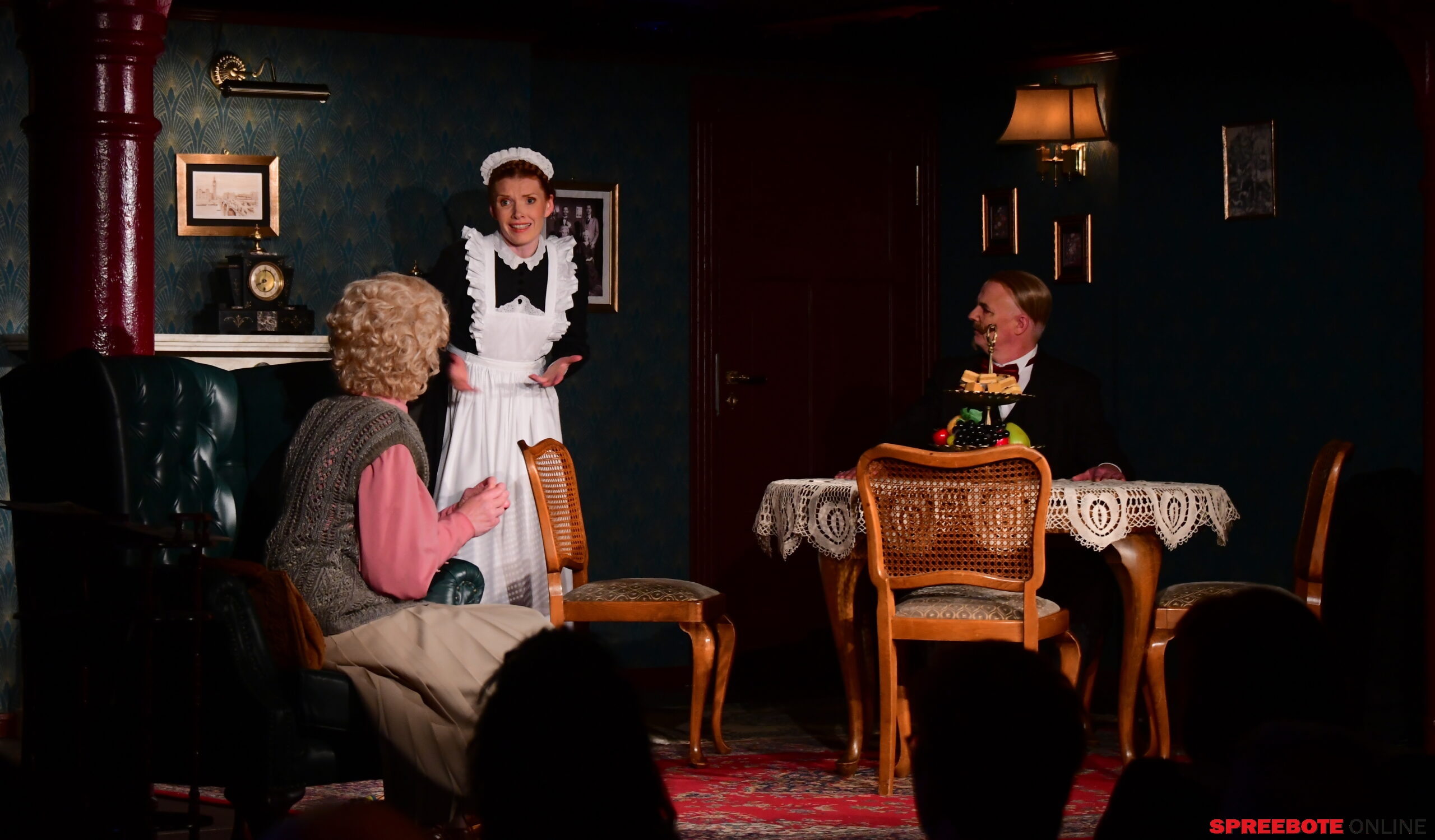 Eine Theateraufführung mit besonderem Charme wurde in der Kulturfabrik in Fürstenwalde am Samstag leibhaftig. Künstler und Schauspieler der Uckermärkischen Bühnen Schwedt hatten mit ihrem Gastspiel „Das Geheimnis der Vier“ viele Gäste in ihren Bann ziehen können. Zu dieser eher ungewöhnlichen Symbiose zwischen Drei-Gänge-Menü und einem Krimi mit Spannung gesellten sich Freunde des Genres. Das Restaurant & Cafe M5 sorgte derweilen für den kulinarischen Genuss und überzeugte mit Champignon-Rahm-Suppe, Trio des Waldes nach Südtiroler Art und zum Schluss mit dem Waldbeeren-Dessert. Der Krimi „Das Geheimnis der Vier“ der Uckermärkischen Bühnen Schwedt handelte im Einzelnen um den Morgen des ersten Arbeitstages der Köchin in Grosvenors House. Sie findet die Leiche von Tuppence Beresford in der Bibliothek. Sie wurde ganz offensichtlich erstochen. Die übrigen Bewohner der Senioren-WG sind über jeden Verdacht erhaben, handelt es sich bei ihnen doch um Miss Jane Marple, Monsieur Hercule Poirot und Tuppences Ehemann Tommy Beresford. Doch das Haus war fest verschlossen und es ist offenbar niemand eingebrochen. Aber wie ist Tuppence Beresford dann zu Tode gekommen? Wer hat die ehemalige Privatdetektivin getötet und warum? Sir Henry Clithering, von Scotland Yard aus dem Ruhestand zurückgeholt, nimmt die Ermittlungen auf. An diesem mörderischen Theaterabend kam die Spannung nicht zu kurz.