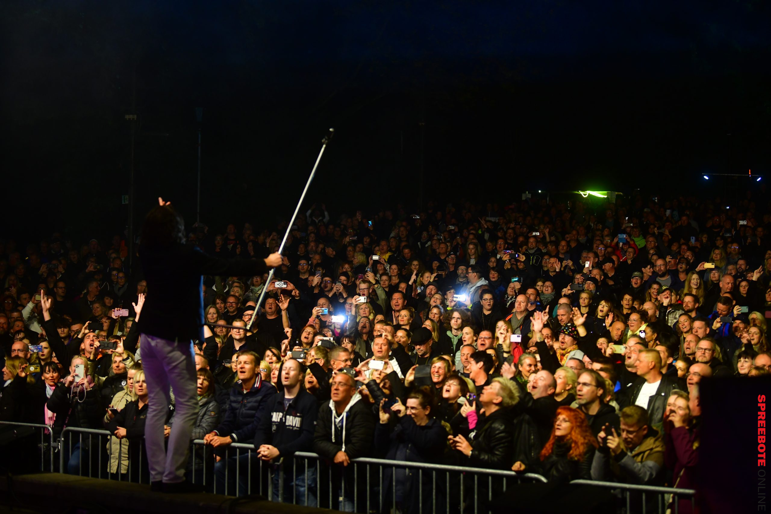 Forced To Mode in Concert – für viele ging ein Traum in Erfüllung mit dem Open- Air- Konzert am Samstag in der Parkbühne Fürstenwalde. Die zwei Jahre des Stillstandes waren schon ganz schön hart an der Schmerzgrenze. Die kulturelle Landschaft ist mittlerweile ziemlich ausgedünnt, nur wenige haben es bis heute vermocht, dem zu trotzen. Umso größer war die Begeisterung auf ganzer Strecke. Die Fans, die in Größenordnungen kamen, waren schon frühzeitig am Start und der Veranstalter zog alle Register. Zwei Einlass-Checkpoints und das Warten hatte ein Ende. An den Bars und den einzelnen Food-Points tobte das Leben. Alle waren gespannt und fanden in der Fangemeinde schnell ihren Platz. Das Konzert nahm seinen Anfang und es gab kein Halten mehr. Die Anfangssequenz mit dieser super Lichtshow – beobachtet aus dem Dunkeln – und das Auftreten von Leadsänger Christian Schottstädt waren mal wieder der Hammer. Die ausgehungerten Fans waren voller Leidenschaft bei ihren Idolen im Geiste, bei Depeche Mode, und der hierzulande unumstritten besten Coverband Forced to Mode.