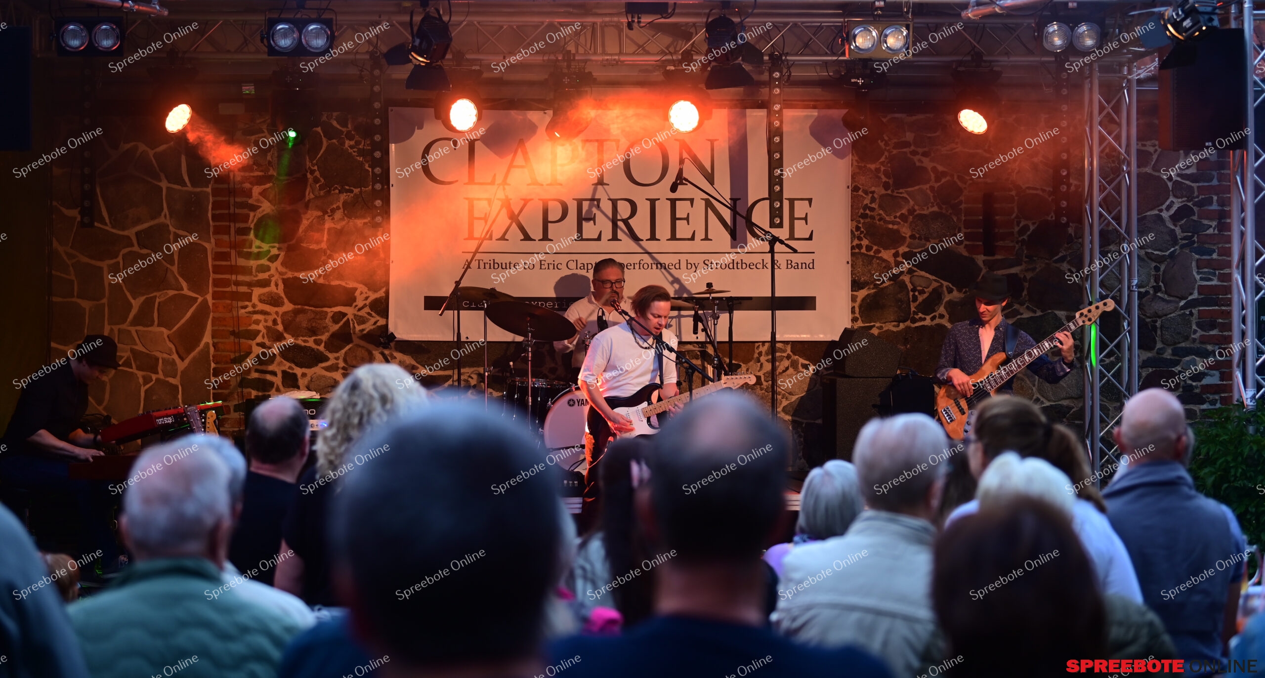 In der Alten Schulscheune am Scharmützelsee in Diensdorf, große Szene am Samstagabend, die Tribute Band Clapton Experience zu Gast auf der Bühne. Die Konzertleitung der Schulscheune, die für sich ihre Musikgigs immer erst um 21 Uhr beginnen lassen, haben sich damit einen guten Namen gemacht. Das Konzertfeeling wird dabei um ein Vielfaches angehoben. Schmiegt sich doch die Bühne an den See, dazu die Wärme des Sommerabends, was will man mehr außer Blues und Bluesrock natürlich. Clapton Experience live in Concert in der Alten Schulscheue traf auf ein begeistertes Publikum, die alle der Musik des Eric Clapton verfallen sind. Leadsänger Sebastian Strodtbeck hätte gut und gerne auch der Sohn sein können, so eine Ähnlichkeit in Stimme und Griffs an der Gitarre unglaublich authentisch. Die Gäste waren wie gefesselt von der Authentizität der Tribute Band Clapton Experience, die den Abend, mit Titeln füllte wie „Cocaine“, „Crossroads“, „Wonderful Tonight“ oder „Layla“ und „I shot The Sheriff“ sprengten nahezu den Rahmen. Dazu die gute Ausleuchtung nebst Sound verliehen der Band an diesem Abend ein besonderer Touch.