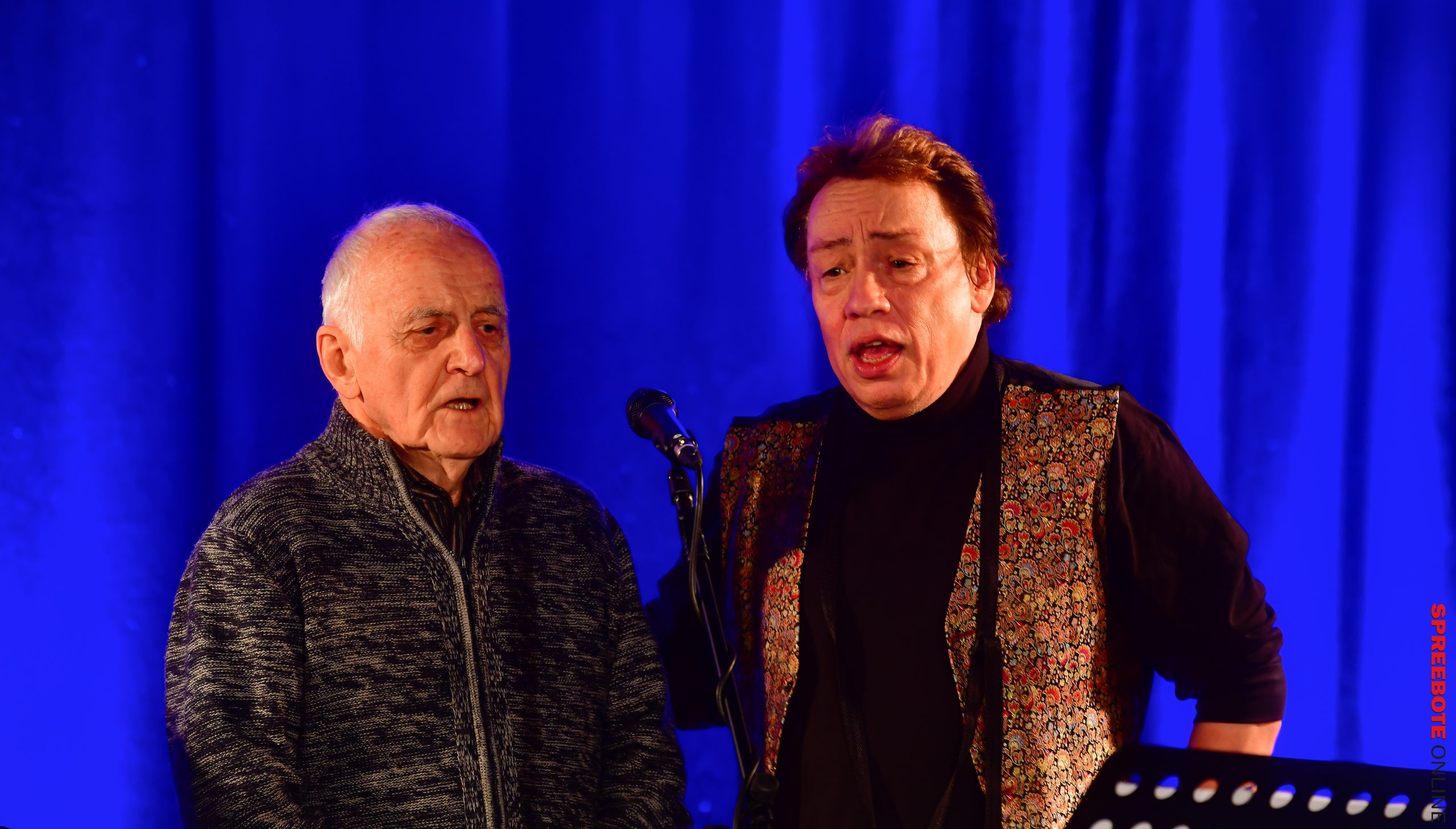 Welch ein bewegender Moment: Karsten Troyke im Duett mit Friedrich Stachat auf der Künstlerbühne im Musikkeller der Kulturfabrik in Fürstenwalde. Gemeinsam sangen sie das Lied „Beltz, Mayn Shtet“, frei übersetzt bedeutet es, dass es eine bewegende glücklichen Kindheit im „Shtetl“ ist und Shtetl bezeichnet ein „Städtlein“, also eine „bewegende Kindheit im Städtlein“, nebenbei war dieser Auftritt auch noch eine Premiere der beiden Künstler. Der Anlass des Abends war der Jahrestag des Gedenkens an die Befreiung des „Konzentrationslagers“ Auschwitz durch die Rote Armee. Sinnbildlich ist Auschwitz das Synonym für den Massenmord der Nazis an den europäischen Juden, Ausdruck des Rassenwahns und das Kainsmal der deutschen Geschichte. Mit Karsten Troyke sollte auch noch die prominente Schauspielerin und Frauenrechtlerin Walfriede Schmitt an diesem Abend dabei sein – und es war, so empfanden das die Gäste, außerordentlich schade – aber sie hatte sich erkältet und das Regelwerk sieht nun mal vor, dass sie deshalb nicht auftreten durfte. Es war auch für die Künstlerin selbst, so war zu erfahren, schwer verkraftbar, da sie sich sehr auf diesen Abend und die künstlerische Zusammenarbeit auf der Bühne gefreut hatte. Sie hätte Jiddische Geschichten, Anekdoten und Gedichte vorgetragen und das Programm Bewusstseins-erweiternd bereichert. Karsten Troyke ist Entertainer genug, um zu wissen, wie man so eine Situation in einen Erfolg ummünzen kann: mit Chansons von Georg Kreisler, jiddischen Volksliedern und Tangos, Evergreens wie: „Es lacht der Wind im Korn“, „Tumbalalaika“ etc. Dank seiner rostig-rauen Stimme, seinem Witz und Schalk bereichert er das Genre individuell und souverän. Er provoziert und diskutiert auf der offenen Bühne und bezieht unbeirrbar das Publikum in seine Gedanken und seine Lieder ein. Ansteckend sein Lachen und seine Traurigkeit!