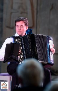 Stücken von J. S. Bach, Astor Piazzolla und vielen weiteren namhaften Komponisten. Leider hatten die beiden Ausnahmekünstler nur exakt 60 Minuten Zeit, diese zeitaufwendigen Stücke zu spielen und dabei ihre schöpferische Leistung unter Beweis zu stellen. Für diese Musik benötigt man Gelassenheit, Zeit und Muße, darum musste Konstantin Manaev leider seine Solo-Stücke aus dem vorher bestimmten Programm auslassen. Dies war dem Hygiene-Konzept geschuldet, das eine Spieldauer von 60 Minuten vorsah. Und auch wenn nicht alles gespielt werden konnte, war es trotz allem ein klangvolles Erlebnis mit Standing Ovations zum Konzertende.