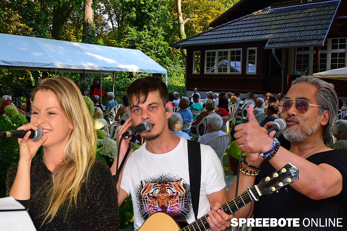 | Der Garten des Scharwenka Kulturforums war am vergangenen Samstag Schau- und Hörplatz zugleich. Das Kurkonzert der Gemeinde Bad Saarow ist von jeher beliebt und daher stets gut besucht. Auch wenn man sich derzeit mit Abstandsregelungen und vielen anderen Regularien im Umgang mit der Pandemie auseinandersetzen muss, wurde dem Ansinnen vollends genüge getan. Das „Gute-Laune-Musik im Sommer Konzert“ mit Dolan José, Lucia Aurich und Daniel Hilpert versprach mit Melodien aus der Welt des Rock, Pop und Musicals und eigenen Songs richtig spannend zu werden. Dolan José, federführend bei dieser Aufführung, ist hier in der Region schon lange kein unbeschriebenes Blatt mehr.
