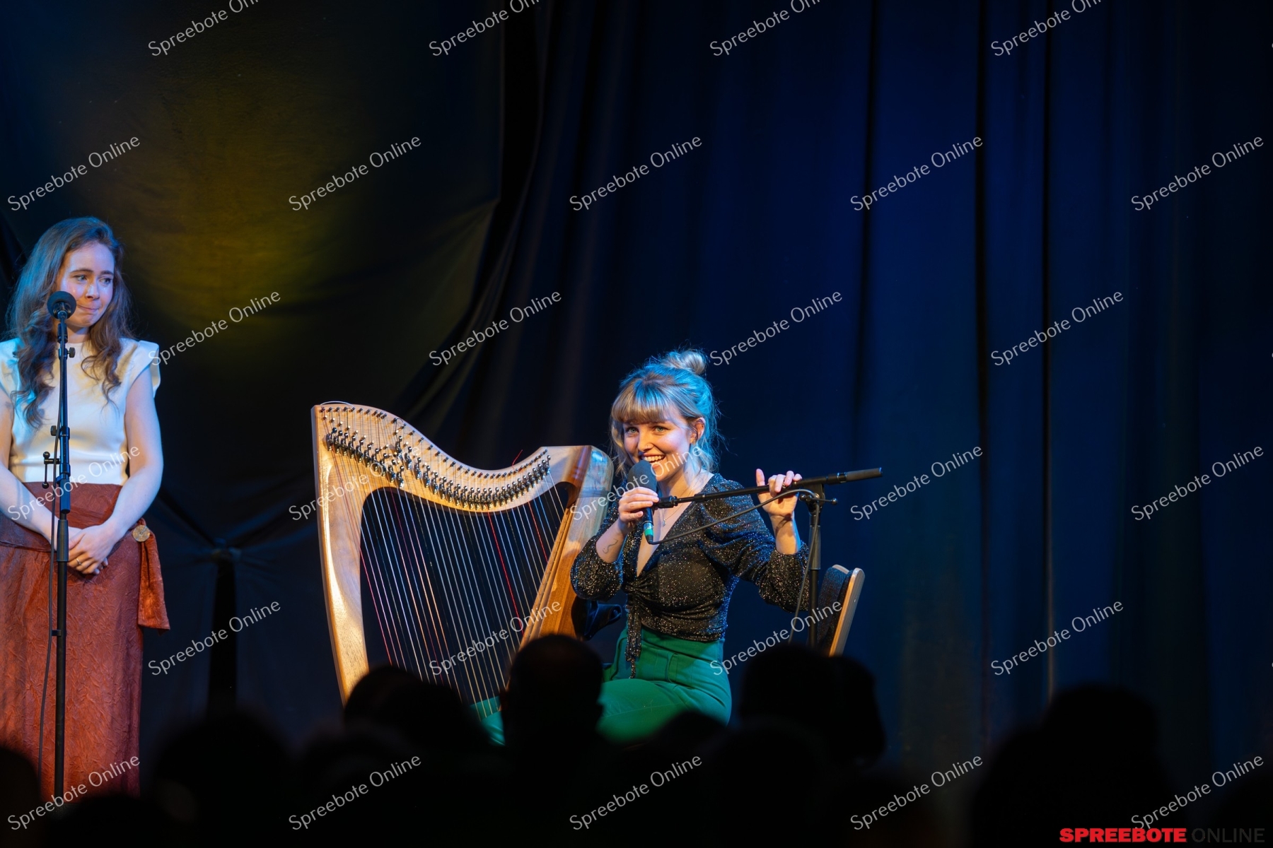 Schottlands Seele zu Gast in der Burg Storkow war für viele Gäste am Samstag eine sehr stimmungsvolle und eindrucksvolle Begegnung mit Klang, Gefühl und Kultur. Der Burgsaal war für diese musikalische Erzählform genau der richtige Rahmen. Die Musik wurde getragen von dem ehrwürdigen Gemäuer, das die Gäste bis auf den letzten Platz spürten. Ein wunderschönes Konzert von Rebecca Hill, Charlie Stewart & Mischa MacPherson. Das Trio mit Geige, Harfe und dieser unbeschreiblich schönen Stimme machte dieses Konzert zu einem eindrucksvollen Abend. Der Scottish Folk lebt von Balladen, von Figuren, von Landschaften, von Sehnsucht und Verlust. Die Songs wirkten wie kleine literarische Momentaufnahmen, manchmal rau, manchmal zart und stets ehrlich. Dazu kommt die Stimmung, ein Hauch Melancholie, ohne schwer zu wirken. Es ist Musik für ruhige Abende, für weite Gedanken, für innere Bilder. Die Künstler zauberten in der Burg Storkow in dem nahezu zweistündigen Konzert eine Atmosphäre, die für einen Moment wie eine heile Welt erschien, getragen von ihrem unverwechselbaren Stil und einer spürbaren inneren Ruhe.