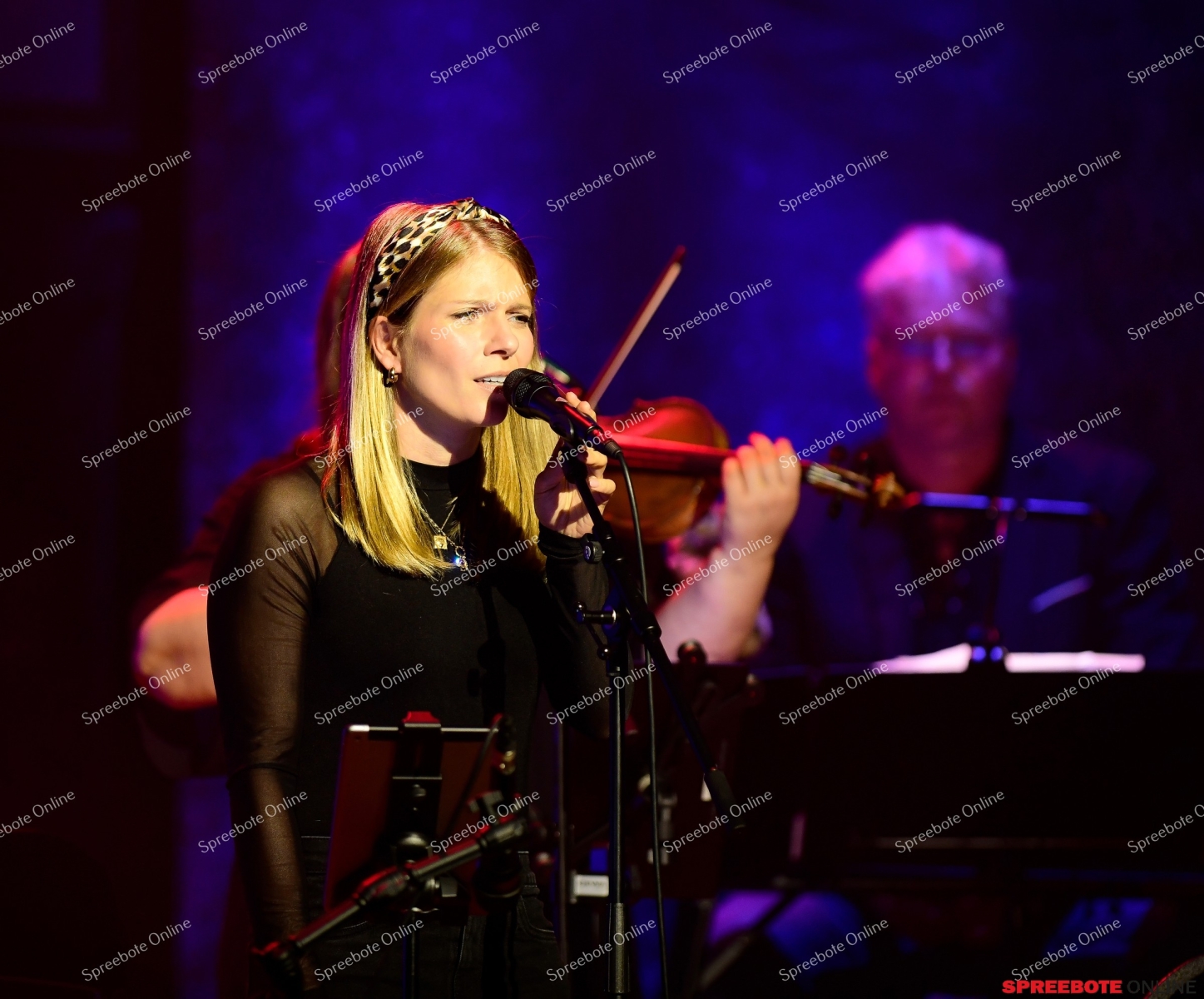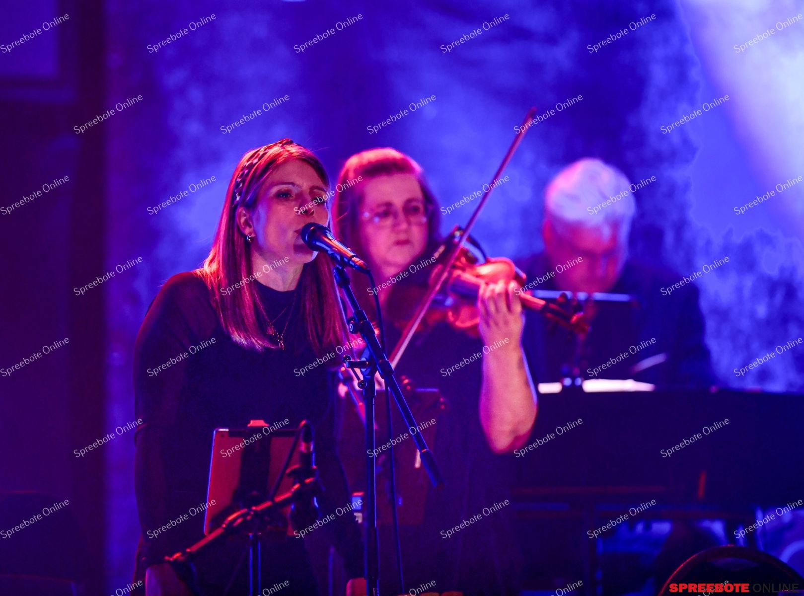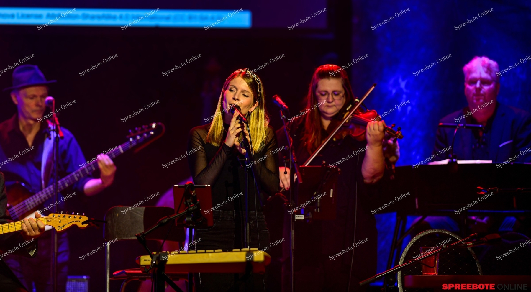 Dazu gesellten sich am Abend große Namen, Hildegard Knef, Tamara Danz, Ella Fitzgerald, David Bowie und viele mehr. Im Hintergrund lief passend dazu eine gestaltete visuelle Begleitung. Die Gäste konnten beim Zuhören lesen, Wer, wieso, weshalb. Es war nicht nur ein Konzert es war ein leiser Dialog mit der Musikgeschichte. Die Gäste im Fürstenwalder Hof waren hörbar und sichtbar bewegt. Die Akustik, die Stimmen alles stimmte. Auch dank der herausragenden Arbeit von Ghostnote Sound, Tobias Neumeister, selbst Musiker, hat sich einmal mehr mit voller Hingabe in den Abend hineingefühlt. Er weiß, wie wichtig Hören ist nicht nur technisch, sondern mit dem Herzen.