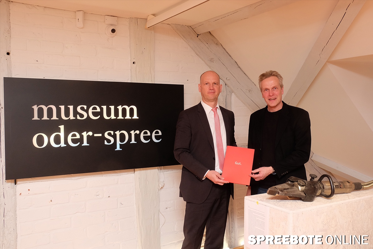 Dank einer Förderung der Ostdeutschen Sparkassenstiftung gemeinsam mit der Sparkasse Oder-Spree kann bereits in diesem Jahr mit der Umsetzung der Neu-konzeption (Regional-) Museum Oder-Spree begonnen werden. Am 12. Februar, dem historischen Tag des Aufrufes zur Sammlungsgründung, wurde die entsprechende Fördermittelzusage auf der Burg Beeskow vom Vorstandsvor-sitzenden der Sparkasse Oder-Spree, Veit Kalinke, feierlich an den Leiter des Kultur- und Sportamtes Oder-Spree, Arnold Bischinger, übergeben.