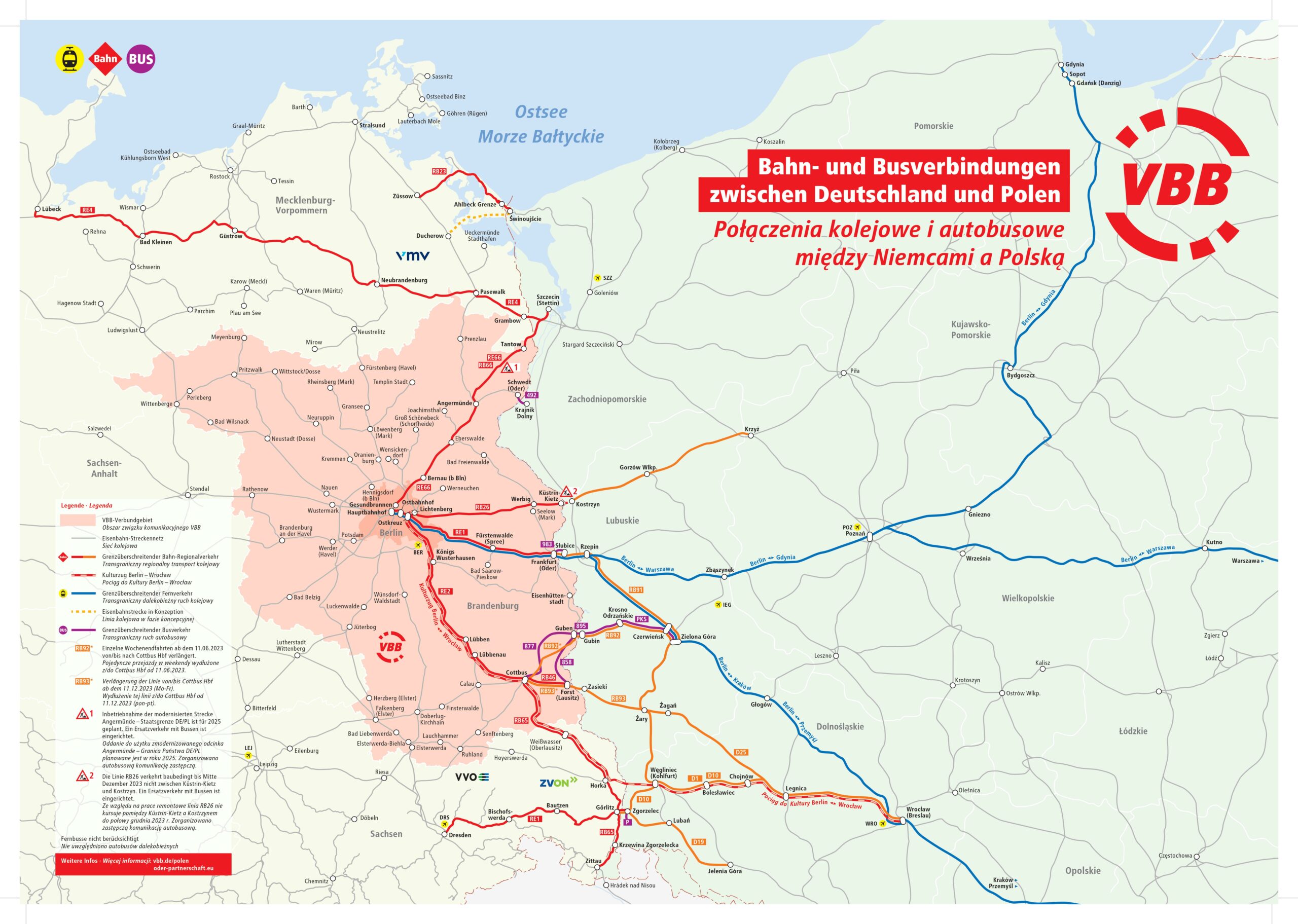 Berlin-Lichtenberg – Berlin Ostkreuz – Cottbus Hbf – Weißwasser (Oberlausitz) – Węgliniec – Bolesławiec – Chojnów – Legnica – Breslau Hauptbahnhof (Wrocław Główny).