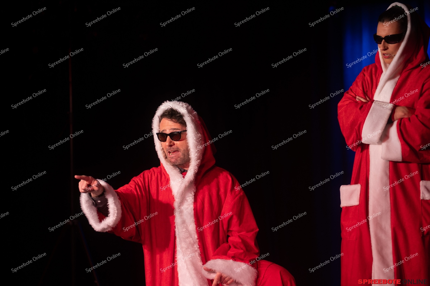 Ein stimmungsvolles Weihnachtskabarett der Oderhähne füllte am Samstagabend die Kulturfabrik Fürstenwalde und es hätte kaum eine schönere Einstimmung auf die Adventszeit sein können. Die Veranstaltung bildete eine charmante Fortsetzung des satirischen Rundumschlags zum Fest der Oderhähne des Jahres aus dem Vorjahr, „Vom Himmel hoch, da kommt nix her“ nun gewissermaßen in Teil II. Und wie es gute Tradition im Kabarett ist, wurde nicht einfach nur wiederholt, sondern liebevoll verschärft, zugespitzt und mit einem Augenzwinkern weitergedacht. Schon im letzten Jahr gerieten die Mitarbeiter einer Veranstaltungsagentur aus Frankfurt (Oder) in ein ziemlich kurioses Dilemma. Nach dem Bruch der Ampelregierung sollten sie ausgerechnet die Weihnachtsfeier für das Kanzleramt organisieren ein Auftrag, der bekanntermaßen grandios in die falsche Richtung lief. Die Lage der Welt, beherrscht von einem Präsidenten Trump und einem Kanzler Merz, ließ das Chaos nicht kleiner erscheinen. In diesem Jahr ziehen sich die Agenturmitarbeiter Jean-Claude und Gabi deshalb lieber aus dem politischen Trubel zurück und wollen das Fest ganz privat, ruhiger und besinnlicher angehen. Könnte man meinen. Doch wie so oft im Leben und besonders im Kabarett kommt selbstverständlich alles anders, als man denkt. Mit feinem Humor, liebevoller Beobachtungsgabe und einem guten Schuss weihnachtlicher Ironie wurde der Abend zu einem kulturellen Vergnügen, das gleichzeitig zum Lachen, Staunen und Nachdenken einlud. Genau so, wie ein gutes Weihnachtskabarett sein sollte, warmherzig, ein bisschen frech und mit herrlicher Leichtigkeit erzählt.