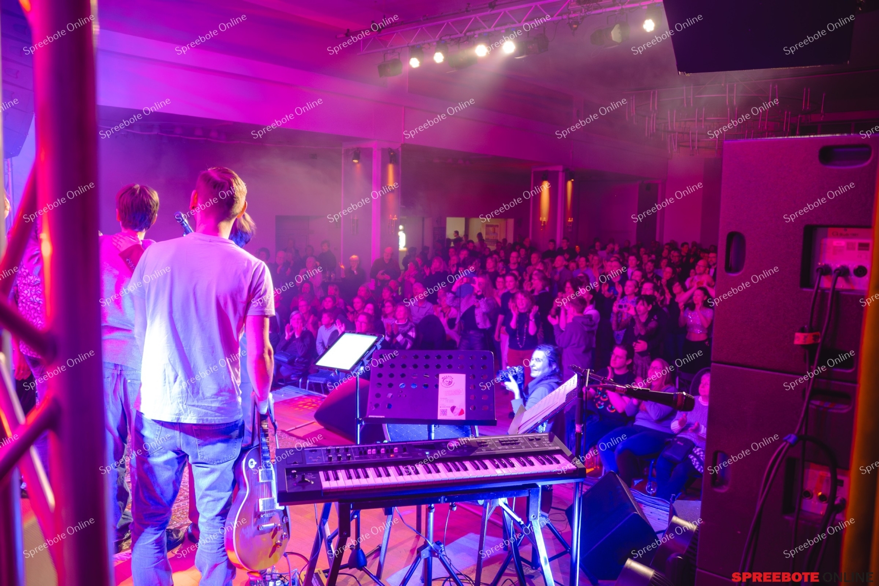 Musik verbindet Menschen auf besondere Weise zu spüren war das am Samstagabend im Fürstenwalder Hof. Eine Stimmung, die als Aufbruch ins neue Jahr gilt und als Neujahrskonzert von besonderer Bedeutung verstanden wird. Das Konzert ließ Emotionen lebendig werden und schuf besondere Momente des Miteinanders. Im letzten Jahr feierte das Neujahrskonzert mit Stefan Ziehm, Annemarie Mai und Tobias Neumeister & Familie große Premiere. Schon damals war nach diesem wunderschönen Erfolg klar, dass es auf jeden Fall ein zweites Konzert geben würde. Erleben konnten es die Gäste nun erneut im Fürstenwalder Hof. In diesem Jahr stand die gesamte Band auf der Bühne eine kleine Herausforderung für die Bühnentechnik, die mit geballter Manpower die Bühne perfekt in Szene setzte. Jeder Künstler war bereits bei der Generalprobe ins richtige Licht gerückt und mit einem besonderen Ton versehen worden, sodass letztlich nichts schiefging. Die gesamte Familie stand auf der Bühne und nahm die Gäste auf eine unvergleichliche Reise quer durch die Musikgenres mit. Besonders gefeiert wurde Karl, der den Musiktitel „Nur noch kurz die Welt retten“ vor diesem vollen Saal völlig selbstsicher sang und dafür frenetisch gefeiert wurde. Hanny und Gustav präsentierten gemeinsam im Duett „Wozu sind Kriege da“ ein aktuelles Thema, das auch heute noch viele bewegt. Den ersten Hit der Mädchenband, die Spice Girls mit „Wannabe“, brachte den Saal schon fast zum Überkochen. Blues und Rock waren ebenso vertreten wie der beliebte Schlagersong von Vicky Leandros, den Annemarie Mai im Duett mit Stefan Ziehm sang um nur einiges zu nennen. Bei der Zugabe im Fürstenwalder Hof war die Stimmung so mitreißend, dass die Gäste die Band am liebsten gar nicht von der Bühne lassen wollten mit einem herzlichen, lang anhaltender Applaus verabschiedeten sie die Musiker schließlich.