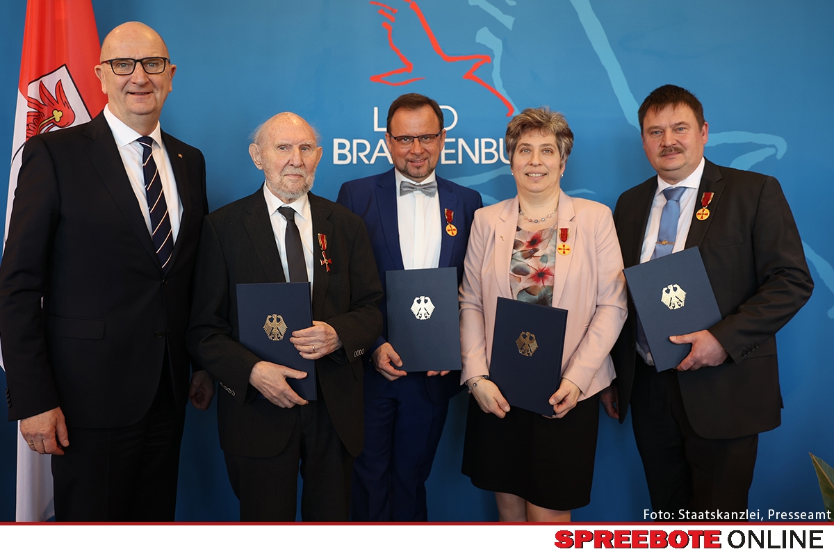 Es ist schon ein bemerkenswerter Zufall, dass die drei Brandenburger und eine Brandenburgerin, denen ich nun den Verdienstorden überreichen darf, alle eine musische Komponente in ihrem Engagement haben so Woidke. Sie verbinden mit ihrem Einsatz und ihrer Arbeit Kinder, Jugendliche und Erwachsene. Sie kümmern sich und fördern damit den Zusammenhalt. Sie schaffen gemeinsame Erlebnisse, an denen viele teilhaben können. Ich danke Ihnen für Ihren engagierten Einsatz für die Gemeinschaft. Menschen miteinander zu verbinden und Orte für die Begegnung zu schaffen, ist gerade in der heutigen Zeit sehr wichtig. Dies haben die Geehrten in bester Weise getan und damit etwas zum Leben in Ihrem persönlichen Umfeld und darüber hinaus beigetragen.
