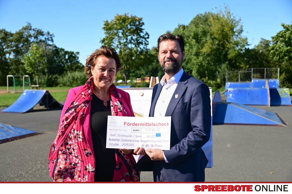 In Fürstenwalde-Nord soll eine neue, attraktive Sport- und Freizeitanlage entstehen. Der geplante Outdoor Activity Park nimmt konkrete Formen an. Heute wurde vor Ort die Fördermittelzusage des Landes Brandenburg an den Bürgermeister der Stadt Fürstenwalde übergeben. Damit ist offiziell der Weg frei für die Umgestaltung des ehemaligen Geländes der Skateranlage und dem Freigelände daneben.