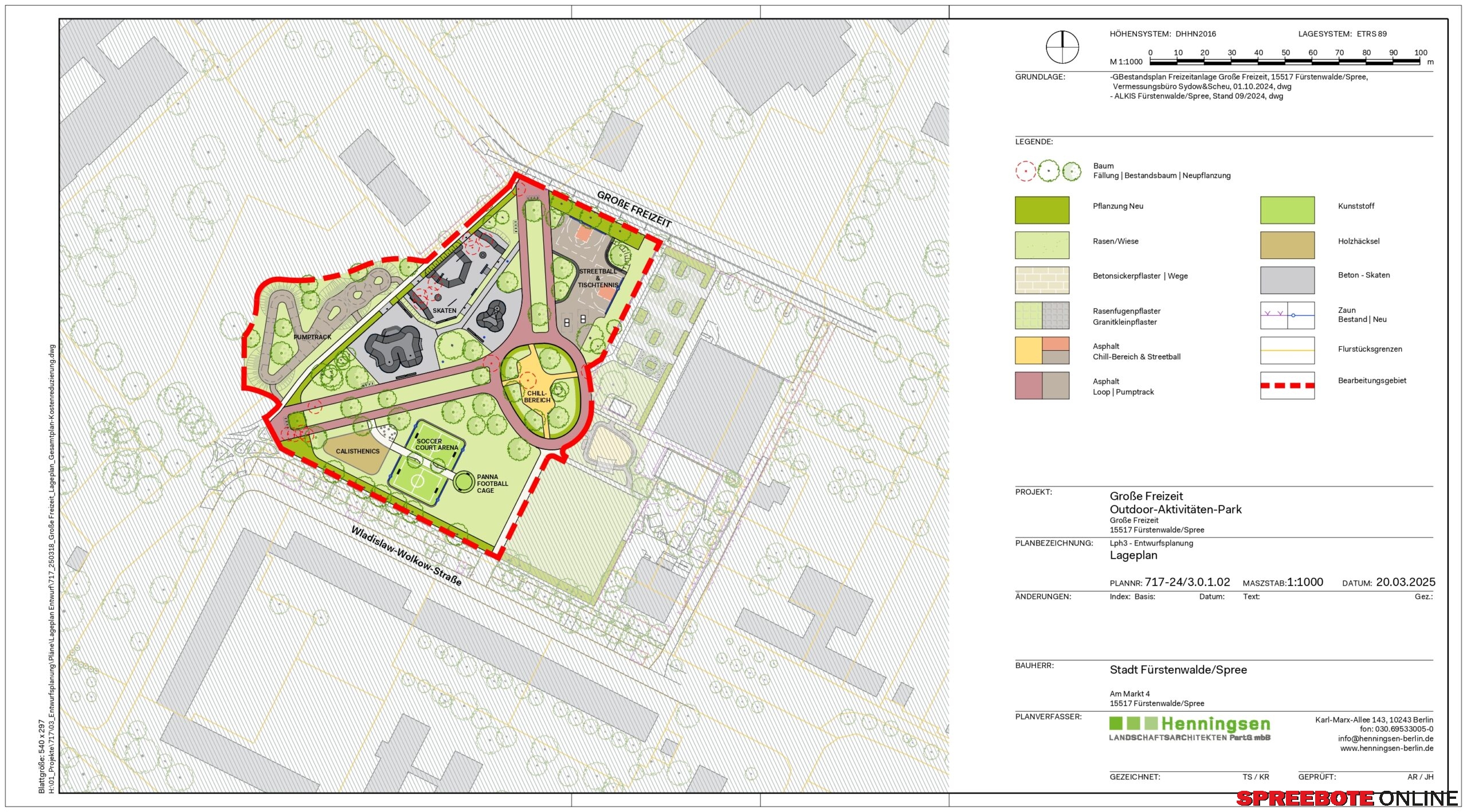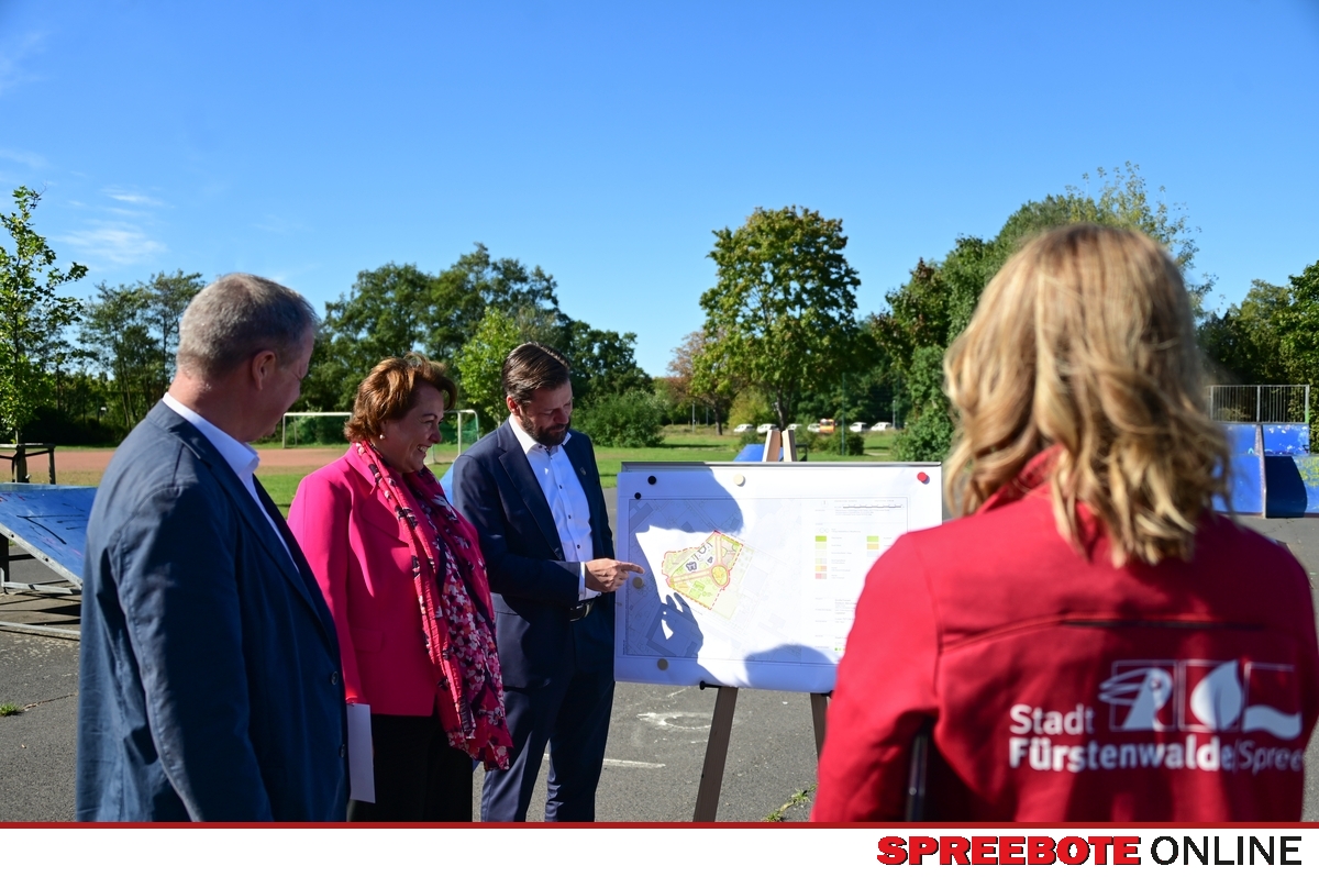 In Fürstenwalde-Nord soll eine neue, attraktive Sport- und Freizeitanlage entstehen. Der geplante Outdoor Activity Park nimmt konkrete Formen an. Heute wurde vor Ort die Fördermittelzusage des Landes Brandenburg an den Bürgermeister der Stadt Fürstenwalde übergeben. Damit ist offiziell der Weg frei für die Umgestaltung des ehemaligen Geländes der Skateranlage und dem Freigelände daneben.