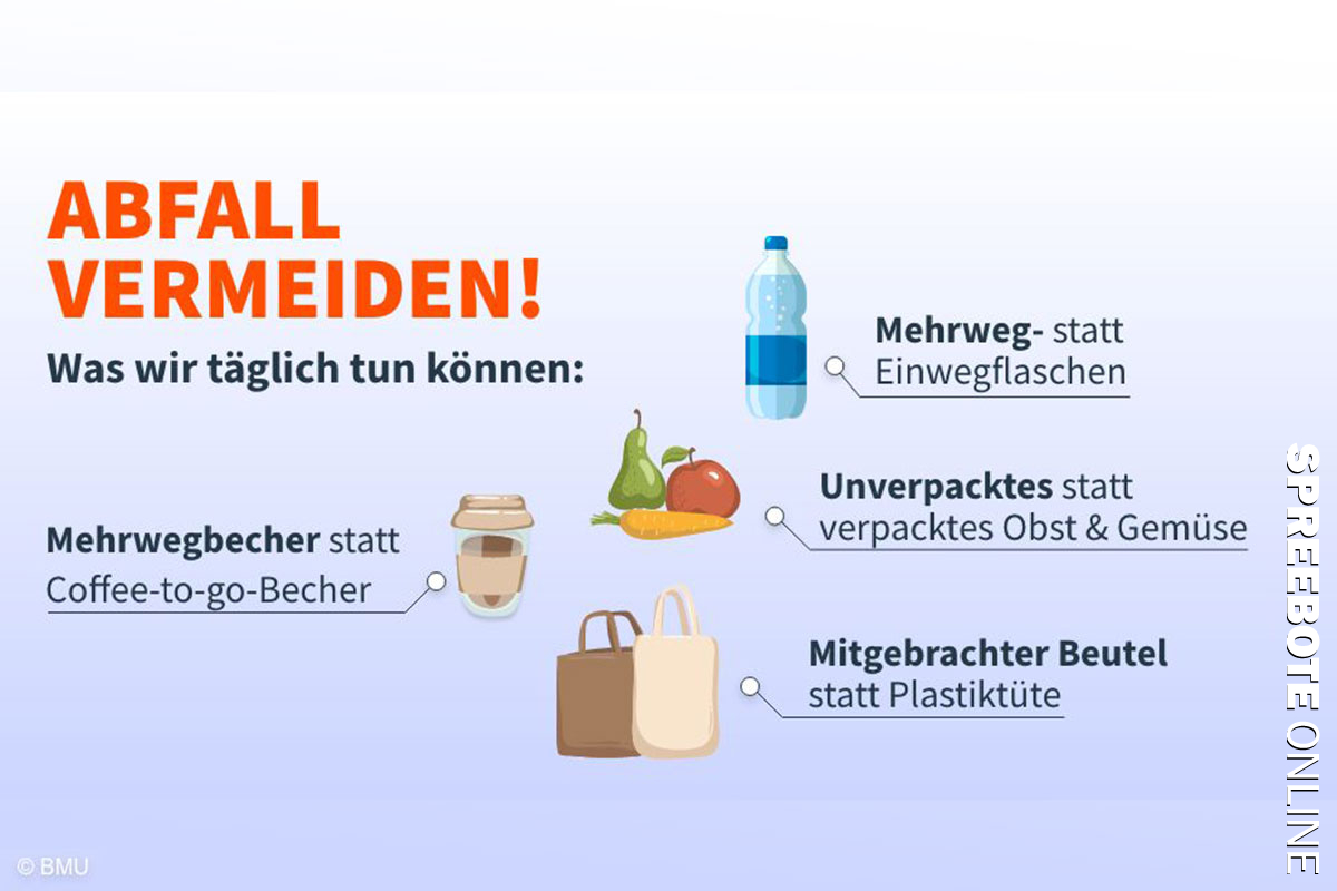 Auch wenn in Deutschland der überwiegende Anteil recycelt und der Rest dem Stand der Technik entsprechend behandelt wird, sollen Abfälle möglichst vermieden werden. In den letzten Jahren wurde einiges erreicht, wie das Abfallvermeidungsprogramm zeigt, aber bleibt viel zu tun. Und an zahlreichen Stellen braucht die Bundesregierung die Unterstützung von Ländern, Kommunen sowie Bürgerinnen und Bürgern. Daher bündelt das Abfallvermeidungsprogramm aktuelle Erkenntnisse und entwickelt neue Handlungsoptionen für die jeweiligen Akteure. Dabei greift das Abfallvermeidungsprogramm aktuelle Trends auf: Supermärkte verkaufen Produkte zunehmend ohne Verpackung. Für Plastiktüten an der Kasse muss extra gezahlt werden, sofern sie nicht schon ganz verschwunden sind. Baumärkte folgen dem Prinzip „Nutzen, statt besitzen“ und verleihen Maschinen an ihre Kunden. Viele dieser Lösungen überträgt das Abfallvermeidungsprogramm in Empfehlungen für konkretes Handeln von Bund, Ländern, Kommunen sowie Unternehmen und Verbraucherinnen und Verbrauchern. Begleitende Dialogformate vertiefen die Diskussionen zu Themen wie Textilien, Einwegartikeln, Abfallvermeidung im Eventmanagement oder Bildungsmaßnahmen zur Abfallvermeidung und zu Interkultureller Kommunikation. Fachdialoge bringen Vertreterinnen und Vertreter aus Wissenschaft, Wirtschaft und Zivilgesellschaft zusammen. Bürgerinnen und Bürger können sich im Rahmen der Veranstaltungen der Europäischen Woche der Abfallvermeidung einbringen. Weitere Informationen finden Sie in Kürze unter www.bmu.de/abfallvermeidung Gemäß Kreislaufwirtschaftsgesetz ist das deutsche Abfallvermeidungsprogramm alle sechs Jahre auszuwerten und bei Bedarf fortzuschreiben. Die Länder waren an der Entwicklung der Fortschreibung des Abfallvermeidungsprogramms des Bundes beteiligt. Mehr Informationen zum Abfallvermeidungsprogramm: https://www.bmu.de/download/2619/ |