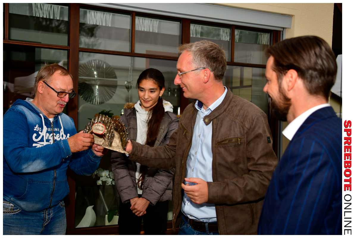 | Die Verleihung der Brücke, dem Sozialpreis des SPD-Ortsvereins Fürstenwalde fand am Dienstag bereits zum 20. Mal statt, in diesem Jahr war die Übergabe im Garten von Familie Alter. Die bekannten und traditionellen Räumlichkeiten wären für diese kleine überschaubare Gesellschaft zu groß gewesen. Mit dem Preis werden seit 20 Jahren engagierte Menschen, Institutionen, Organisatoren, Initiativen oder Schulen ausgezeichnet. Über jedes Kind und jeden Jugendlichen, der nicht auf der Straße ist, kann man sich nur glücklich schätzen, sagte Elisabeth Alter. Darum möchte der Ortsverein die Gelegenheit nutzen und sich bei Axel Stuwe, der den Budo-Dojo-Sportclub Fürstenwalde e.V. seit nahezu 30 Jahren betreibt, bedanken.Axel Stuwe ist bekannt für sein herzliches Wesen, seine Bereitschaft, etwas in die Tat umzusetzen und dabei auf seine eigenen persönlichen Belange hintenan zu stellen, wenn es der guten Sache dient. Seit 1992 ist der Verein aktiv, er hat derzeit 250 Mitglieder. Davon ist der Jüngste gerade mal 4 Jahre alt, der Älteste ist 75 Jahre, das mache auch stolz. Nach vorsichtigen Schätzungen, sagte Axel Stuwe, sind bei ihm seit der Gründung des Vereins in Fürstenwalde 10.000 Kinder durch den Sportclub gegangen. Darüber hinaus bietet Axel Stuwe Kindern Skifreizeiten und Ferienfahrten an, die sehr gern genutzt werden. Bürgermeister Matthias Rudolph, der dieser Auszeichnung auf Einladung beiwohnte, ließ sich nicht festnageln auf die Frage von Elisabeth Alter, ob das Jubiläum des Budo-Dojo-Sportclubs Fürstenwalde e.V. im nächsten Jahr beispielsweise auf dem Marktplatz könne. Er entgegnete, da werde eine Menge gefeiert im Rahmen des 750-jährigen Jubiläums der Stadt Fürstenwalde und man würde sich dann schon finden.