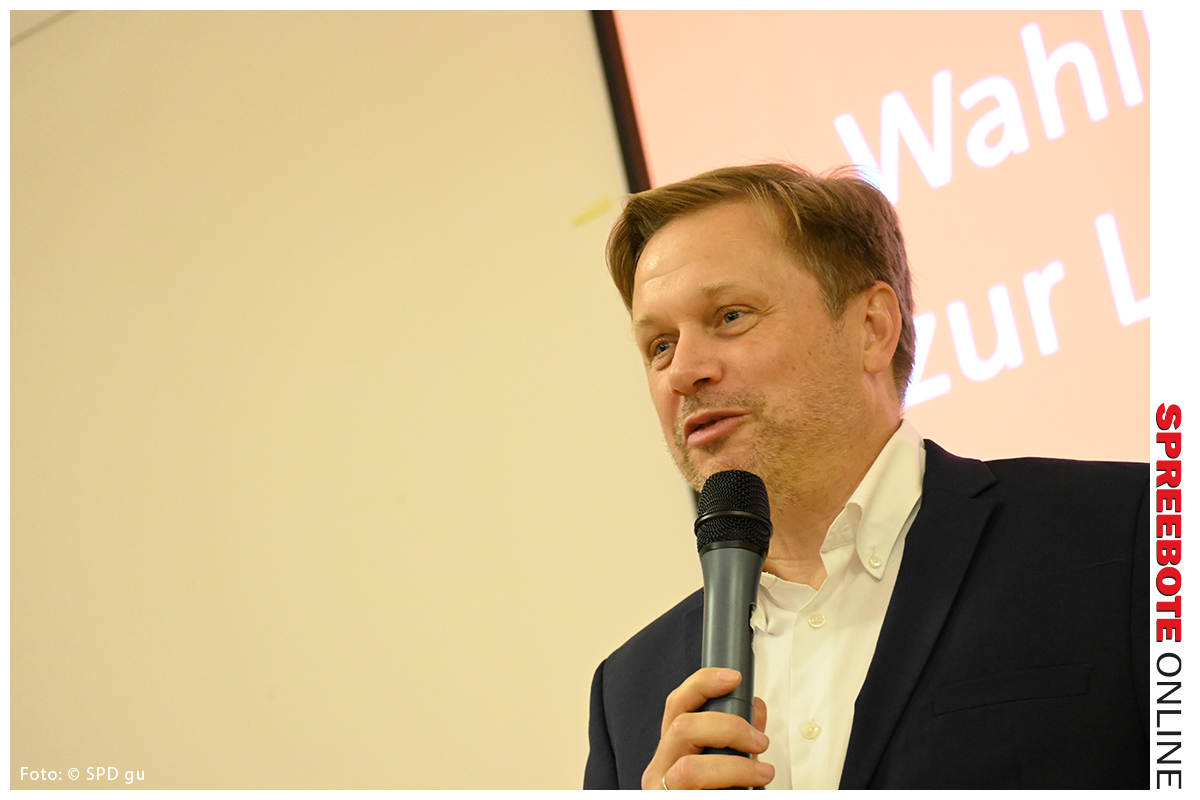 Wir wollen ein moderner Landkreis sein und ihn weiter entwickeln, meinte Steffen. Wir dürfen bei Tesla nicht stehenbleiben, auch wenn wir uns über diesen neuen Arbeitgeber sehr freuen. Wir als Landkreis sind deutlich mehr. Nur die SPD könne auf lange Sicht für Sicherheit und soziale Gerechtigkeit sorgen. Keinesfalls die Populisten. Als Bürgermeister habe er sich stets darum bemüht, dass der Bürger keine Nummer ist, wenn dieser eine Verwaltung betritt. Er hat ein Anliegen und ein Recht darauf, freundlich und korrekt behandelt zu werden, so Steffen. Als Nachbarn und Gäste haben der Bezirksbürgermeister des Berliner Bezirks Treptow-Köpenick Oliver Igel sowie die Genossin Katharina Jahn-Günther vorbeigeschaut. Da Stadt (Berlin) und Land (Brandenburg) vor allem im Speckgürtel immer weiter zusammenwachsen, seien Kontakte von Ort zu Ort wichtiger denn je. Köpenick und Oder-Spree wollen sich auf Ebene der Sozialdemokraten künftig sich enger abstimmen und kooperieren. Berlin und Brandenburg sind gelegentlich wie ein altes Ehepaar und entsprechend schweigsam“, so Steffen.Igel betonte die Gemeinsamkeiten eines Außenbezirks wie Köpenick und dem Landkreis Oder Spree. „Manchmal sind wir von Berlin-Mitte weiter weg!