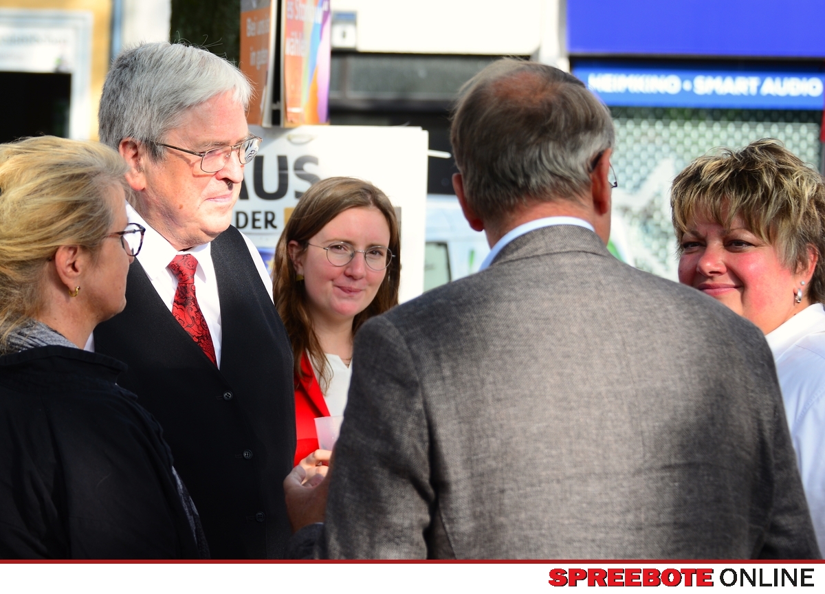 Der kommunale Stammtisch der Sozialdemokratie fand am Dienstagabend auf dem Markplatz in Storkow unter der Friedenseiche reges Interesse. Themen gab es viele und für kompetente Gesprächspartner hatte die Genossen gesorgt. Der Wirtschaftsminister des Landes Brandenburg Jörg Steinbach sowie Mathias Papendiek Mitglied des Bundestages waren gekommen. Zu ihnen schlossen die Kandidaten des Wahlbündnis-Für ein lebenswertes und modernes Storkow sowie weitere Kandidaten der Region auf. Die Themenvielfalt war vielschichtig, ÖPNV ist nach wie vor das Topthema. Wobei die Stadt Storkow und das wurde positiv begrüßt, mit dem Rufbus „Dalli“ einen guten Weg eingeschlagen habe. Dies sei eine gute Entscheidung gewesen und wie man sieht, beteiligen sich jetzt viele weitere Gemeinden an dem Projekt. Die wirtschaftliche Situation in Brandenburg und Deutschland spielte ebenfalls eine wichtige Rolle. Mal ganz abgesehen von der Energiepolitik, die bei den Bürgern für viel Unmut sorgten. Hier waren die Sozialdemokraten gefordert und konnten so manche Gesprächsoffensive entschärfen.