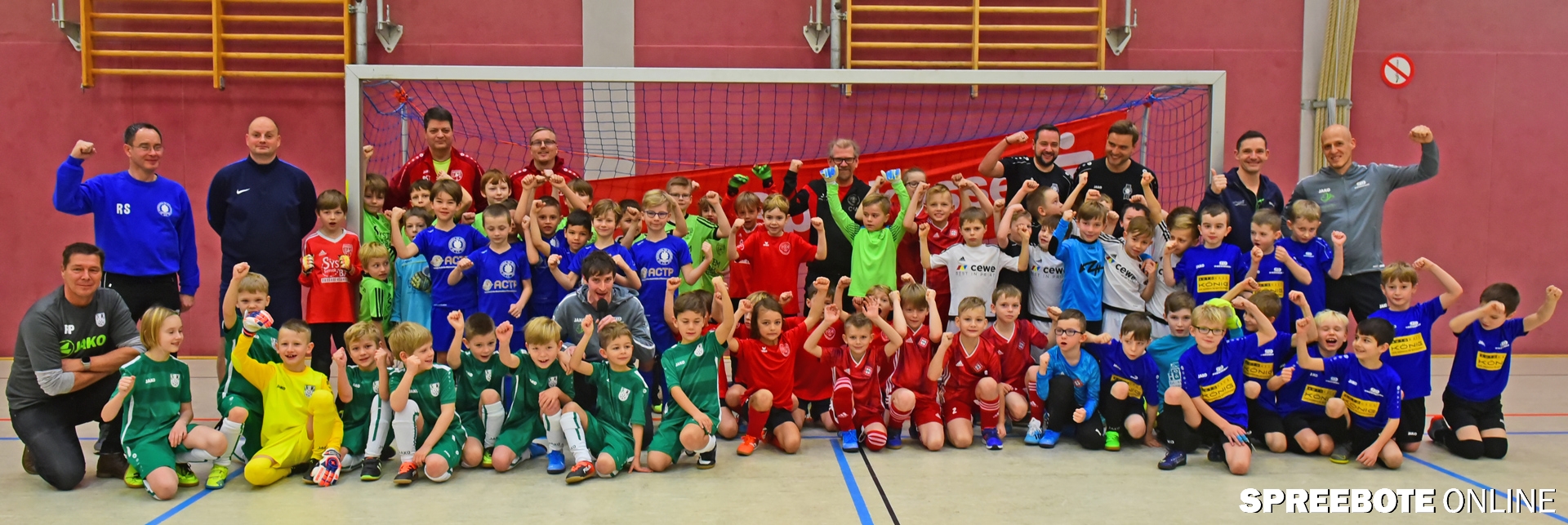 So ein Fußballturnier in den Wintermonaten soll den Spaß am Fußballspielen, besonders für die Kids, weitertragen, um das Erlernte anzuwenden und sich im Wettbewerb der unterschiedlichen Mannschaften dann zu behaupten. Für die eingeladenen Vereine ist so ein Turnier auch eine Leistungsprobe für ihre Fußball-Kids. Die BSG Pneumant veranstaltete am vergangenen Wochenende gleich vier Turniere in allen ihren Altersklassen. Wie so ein Turnier organisiert wird, liegt beim ausrichtenden Verein selbst. Hier sah man den Ideenreichtum des Abteilungsleiters für den Bereich Fußballsport, Sebastian Probst, mit seinen Mitstreitern. Ein kleines Highlight der Professionalität hatten sie mit eingebaut: Die Mannschaften und ihre einzelnen Spieler wurden aufgerufen und in der Halle mit viel buntem Licht und Nebel herzlich bejubelt und mit viel Applaus empfangen von den anwesenden Gästen. Etwas unheimlich war das im ersten Moment schon für die Kids, aber die Aufregung verflog, als sie mit stolzgeschwellter Brust die große Halle betraten. Acht Mannschaften waren mit dabei: BSG Pneumant Fürstenwalde I & II, FV Erkner, SG Borussia Fürstenwalde, FSV Preußen Bad Saarow, Jfc Märkische Löwen, FSV Union Fürstenwalde und Rot-Weiß Neuenhagen.