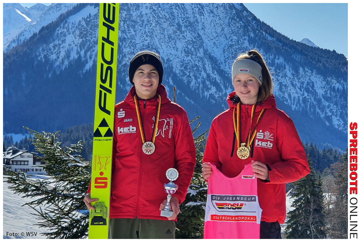Nicht nur in Peking geht es derzeit spannend zu. Das Wochenende brachte auch wieder wichtige Wettkämpfe für die Sportler und Sportlerinnen des WSV 1923 Bad Freienwalde. Diesmal starteten Max Unglaube und Alvine Holz beim Deutschlandpokal in Oberstdorf. Dabei gelang Max am Freitag mit 100,5 Metern der insgesamt weiteste Sprung der Wettkämpfe an beiden Tagen. Sein zweiter Sprung mit 95, 5 Metern brachte ihm dann den zweiten Platz hinter Janne Holz aus Degenfeld und vor Julian Hillmer, ebenfalls aus Degenfeld. Am Sonntag gelang ihm dann noch einmal ein sehr guter vierter Platz. Insgesamt liegt Max damit in der Pokalwertung in seiner Altersklasse weiterhin auf Platz 1. Noch besser machte es diesmal Alvine Holz. Sie konnte sowohl das Freitags-Springen als auch den Sprunglauf am Sonnabend für sich vor Selina Kölle aus Degenfeld entscheiden. Mit 85,5 und 87 Metern schaffte sie dabei am Freitag bei den jungen Damen hinter Sina Kiechle aus Oberstdorf die beiden weitesten Sprünge. Nur Sina war mit 93 Metern einmal weiter als Alvine. Auch am Sonntag gelang ihr wieder der zweitweiteste Sprung mit 88,5 Metern. Durch diese beiden Siege konnte Alvine Holz ebenfalls die Gesamtwertung im Deutschlandpokal in ihrer Altersklasse übernehmen. Zurzeit sind damit Max Unglaube der beste 16-jährige Skispringer und Alvine Holz die beste 17-jährige Skispringerin in Deutschland.