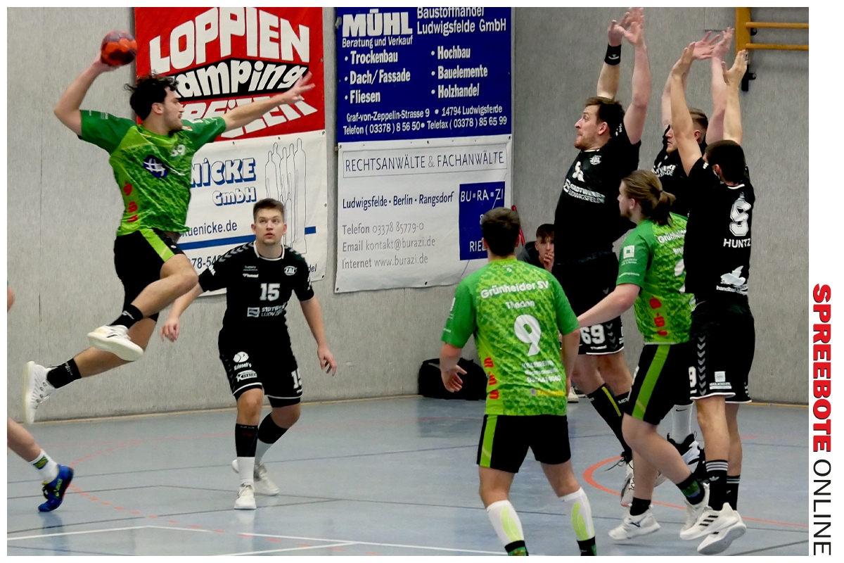 Ohne Punkte sind die Männer des Grünheider SV von ihrem ersten Auswärts-Punktspiel des neuen Jahres 2023 in der Handball-Oberliga Ostsee-Spree zurückgekehrt. Die GSV-Löwen um Chefcoach Axel Both und Co-Trainer Dirk Köhler unterlagen am Samstag, 21. Januar, beim favorisierten Tabellen-Dritten Ludwigsfelder HC mit 26:33 (14:16). Die Grünheider haben jetzt 12:22 Punkte auf ihrem Konto und bleiben Tabellen-Zehnter in der 14 Mannschaften umfassenden vierten Liga. Die Ludwigsfelder sind mit zwei Spielen weniger weiter Dritter mit nun 23:7 Zählern. Erfolgreichster Werfer in der Stadt-Sporthalle war GSV-Kapitän Tom Griebsch mit zehn Toren, darunter vier verwandelte Siebenmeter.