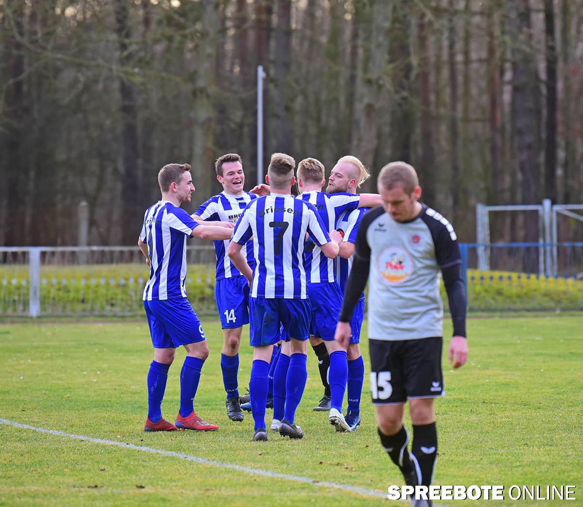 Die Wildauer ihrerseits versuchten in der Folge mit langen Bällen zum Erfolg zu kommen, doch sollten sie immer wieder an der vielbeinigen Abwehr hängenbleiben. In der 29. Minute verwandelte Philipp Noack sehr lässig einen berechtigten Foulelfmeter zum vielumjubelten 1:0 für die Heimelf, die sich endlich mal wieder für ihren immensen läuferischen Aufwand belohnte. Vorausgegangen war ein langer Ball von Danilo Ballhorn, welchen Kevin Schübler eher erreichte, als der Wildauer Schlussmann Schermer, der ihn nur noch am Kopf erwischte, konsequenterweise gab es den berechtigten Strafstoß.