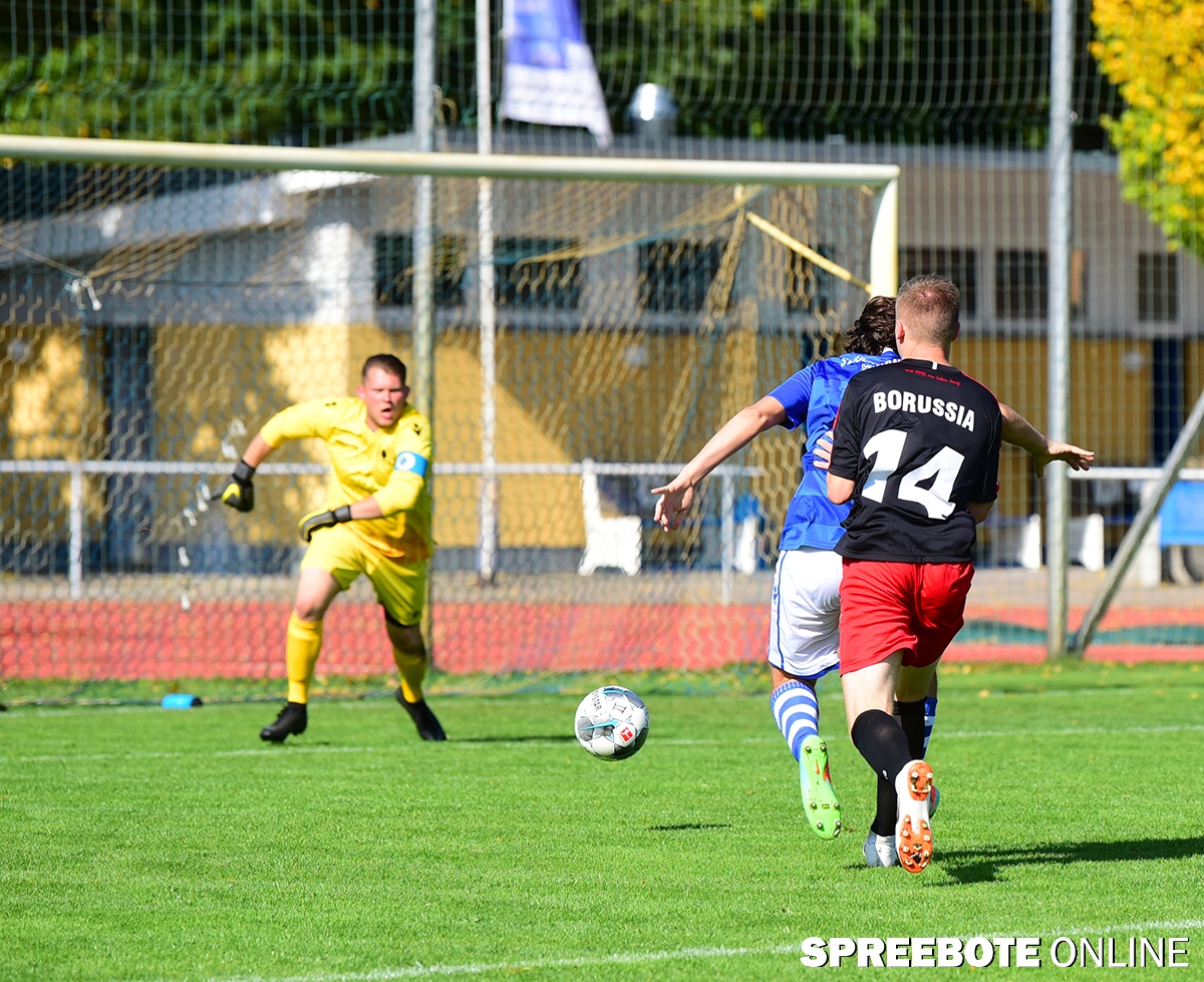 Ein echtes Spitzenspiel über 90. Minuten mit rassigen Zweikämpfen. Leider verletzte sich Kai am Ende, gute Besserung! Die Schöneicher gingen nach 28 Minuten durch Mende per Strafstoß in Führung. Doch Jim Szelinski hatte den Ball nur 2 Minuten später auf dem Fuß und glich das Torverhältnis aus. Im weiteren Verlauf der hitzigen Debatte war es abermals Mende, der dann per Kopf nach einem Freistoß auf 2:1 erhöhte. Nach der Halbzeitpause merkte man den Borussen ihren Drang an, im Spielverlauf zu ihren Gunsten eine Veränderung herbeizuführen. Bei soviel Tatendrang wurden die Reaktionen auf den Prüfstand gestellt und es gelang eher den Schöneichern, abermals die Initiative zu übernehmen und das Torverhältnis auf 3:1 zu erhöhen.