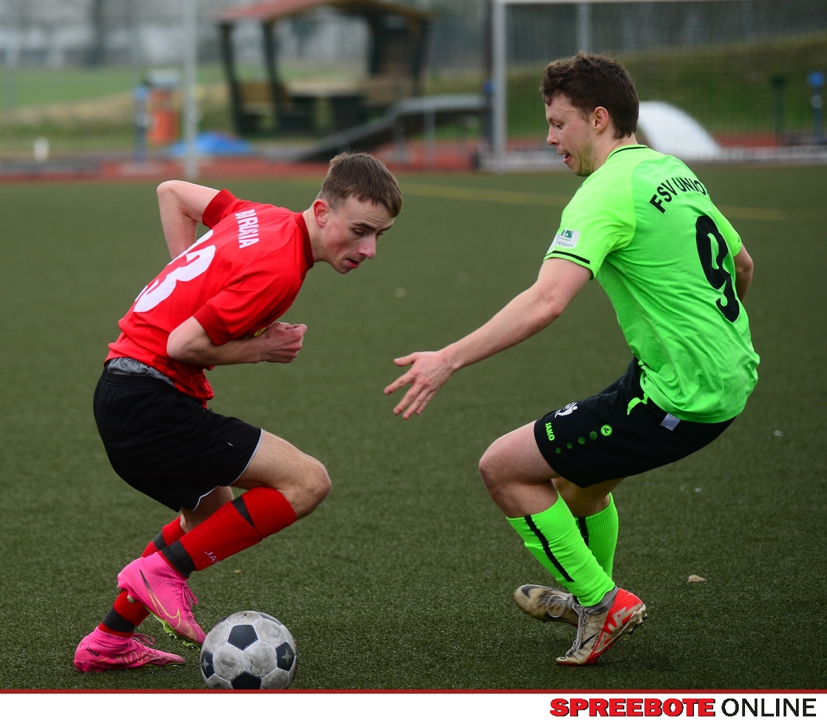 Das Stadt Derby schlecht hin, es sollte eigentlich eine Revanche werden, für den FSV Union III. zu der einstigen Klatsche die sie erlitten gegen die Borussen am 3.Spieltag. Mitte September im heimischen Friesenstadion an der Hangelsberger Chaussee, schwächelte Union gewaltig. Um nun das Gleichgewicht wiederherzustellen und das Spiel im Zweifelsfall zu gewinnen waren die Unioner gerüstet. Und die Borussen waren gewarnt auch schon wegen des verdachtes das Union III. jetzt mit dem letzten Spiel gegen Grün Weiß Letschin eine Aufholjagd beginnen würde, verstärkten sie ebenfalls ihre Reihen. Im Sportzentrum Süd in Fürstenwalde begann am Samstagnachmittag pünktlich das Spiel. Die erwarteten Fanblocks in Größen Ordnungen blieben allerdings aus, die Spannung scheint erlegen zu sein. Das Spiel war sofort der Mittelpunkt und so wie erwartet machten die Union mächtig Druck allerdings nur bis zur Abwehrkette der Borussen, sie verteidigten mit allen Mitteln den Strafraum. Das war für die Unioner echt deprimierend aber es lag wohl auch an einigen Spielern die eher selber als gemeinsam im Teamwork spielten. Das kam den Borussen zu pass, sie wechselten die Seiten spielten schnell aus dem Mittelfeld auf die Flügel und hatten den besseren Plan. Denn in der 10.Minute nach einer Ecke bekam der Unioner Torwart den Ball nicht zu fassen, konnte diesen nur abschlagen, die Borussen im mehrmaligen Nachgang in sekundenschnelle bekamen den Ball nicht rein, ein tumult, Edem Sgaier drosch den Ball ins Netz da gab es nichts zu halten. 10.Minute Borussia führt mit 1:0. Ok, das hat ja nix zu sagen in 80 Minuten kann ja noch viel passiern. Die Zuschauer sahen allerdings kein schönes Spiel mehr nur noch ein ewiges hin und her ohne nennenswerte Torerfolge. Nach der halbzeitpause will Union das Blatt drehen aber kommt nicht richtig in fahrt und kann sein potenzial nicht abrufen. Das zweite Gegentor kündigte sich bereits an. Im Zweikampf bekam der Borusse Robert Stenzel den Ball unter Kontrolle rannte auf der rechten Seite Richtung Unioner Tor, teilweise bedrängt durch die Abwehr, kurz vor dem Strafraum mit blick zum Torman täuschte er diesen gab den Ball nach links in die Strafraummitte ab an den mitgerannten Mario Korzinski alias „Kosche“ der wie aus dem nichts angeflogen kam und den Ball unten rechts im Tor der Unioner versenkte, 2:0 für die Borussen. Spätestens hier waren die Unioner mächtig geladen. Schiedsrichter Maik Neumann der die Partie gut unter Kontrolle hatten pfiff diese Resolut. Es war schon komisch aber er musste sich bestimmt 10 mal im Spiel bücken damit der Ball seine Richtung beibehält. Union wechselte seine Spieler durch um mehr Offensiven Druck zu machen. Na endlich tat sich da mal was allerdings etwas spät an der Zeit. In der 82.Min.machte Marcel Schweter den Anschlusstreffer zum 2:1. Die Borussen ließen ab da an nichts mehr anbrennen und schlossen die Reihen.