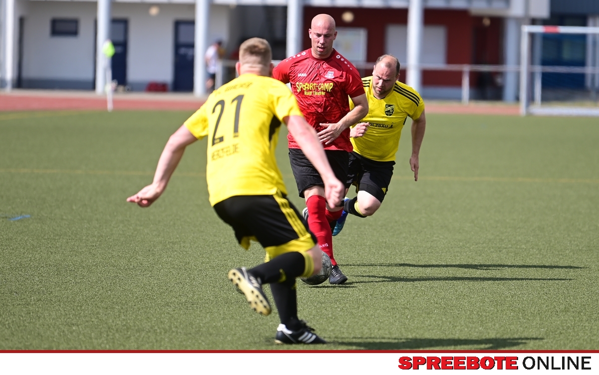 Die schiere Größe des Fußballfeldes im Sportzentrum Süd in Fürstenwalde lässt so manches Team an die Grenzen des Belastbaren kommen. Am Samstag hatte die SG Borussia, den Wacker Herzfelde zu Gast. Der Sonnen Wolken Mix ließ beide Mannschaften nicht viel Luft. Das Spiel begann sofort druckvoll von Seiten der Borussia, sie pressten Herzfelde in die eigene Hälfte. Herzfelde konnte sich kaum gegen den Ansturm erwehren. Die zweiten Bälle gingen im Getümmel verloren und Borussia nahm die Fehlerquote gerne an und versuchte sich bis vor das Tor von Herzfelde in Position zu bringen. Noch fehlte der Abschluss und noch war die Verteidigung in Takt. Das sollte sich aber mit einer Balleroberung im Mittelfeld durch Jim Szelinski ändern. Durch einen zu schwach getreten Pass der Herzfelder von links ins Mittelfeld war Szelinski schon an Ort und Stelle und konnte im schnellen Konter den Ball abnehmen. Nahezu unbedrängt erst kurz vor dem Tor zirkelte er ihn am Torwart rechts vorbei und brachte Borussia in Führung zum 1:0 in der 11. Minute. Herzfelde bekam den Ball nicht unter Kontrolle. Obwohl sie bestrebt waren, hier ebenfalls etwas zu reißen, blieben die Versuche in der Verteidigung der Borussen stecken. Und das schnelle Spiel und die Fehler der Herzfelder brachte Borussia in Komfortlage. In der 23. Minute machte Mario Korzinski das zweite Tor. Er manövrierte aus der Deckung heraus die Verteidigung gekonnt aus. Gesehen hatte das auch Hamza Tatari der als Flügelmann auf der rechten Seite „Kosche“ begleitete. Der Druck auf die Gäste blieb weiterhin bestehen und so dauerte es nur bis zur 34. Minute und Robert Stenzel schmetterte den Ball zum 3:0 ins Tor. Nach der Halbzeitpause hatte sich an dem Bild wenig geändert, die Gastgeber machten in Folge noch zwei Tore und gewannen ihr Heimspiel gegen eine schwach aufspielende Gäste elf.