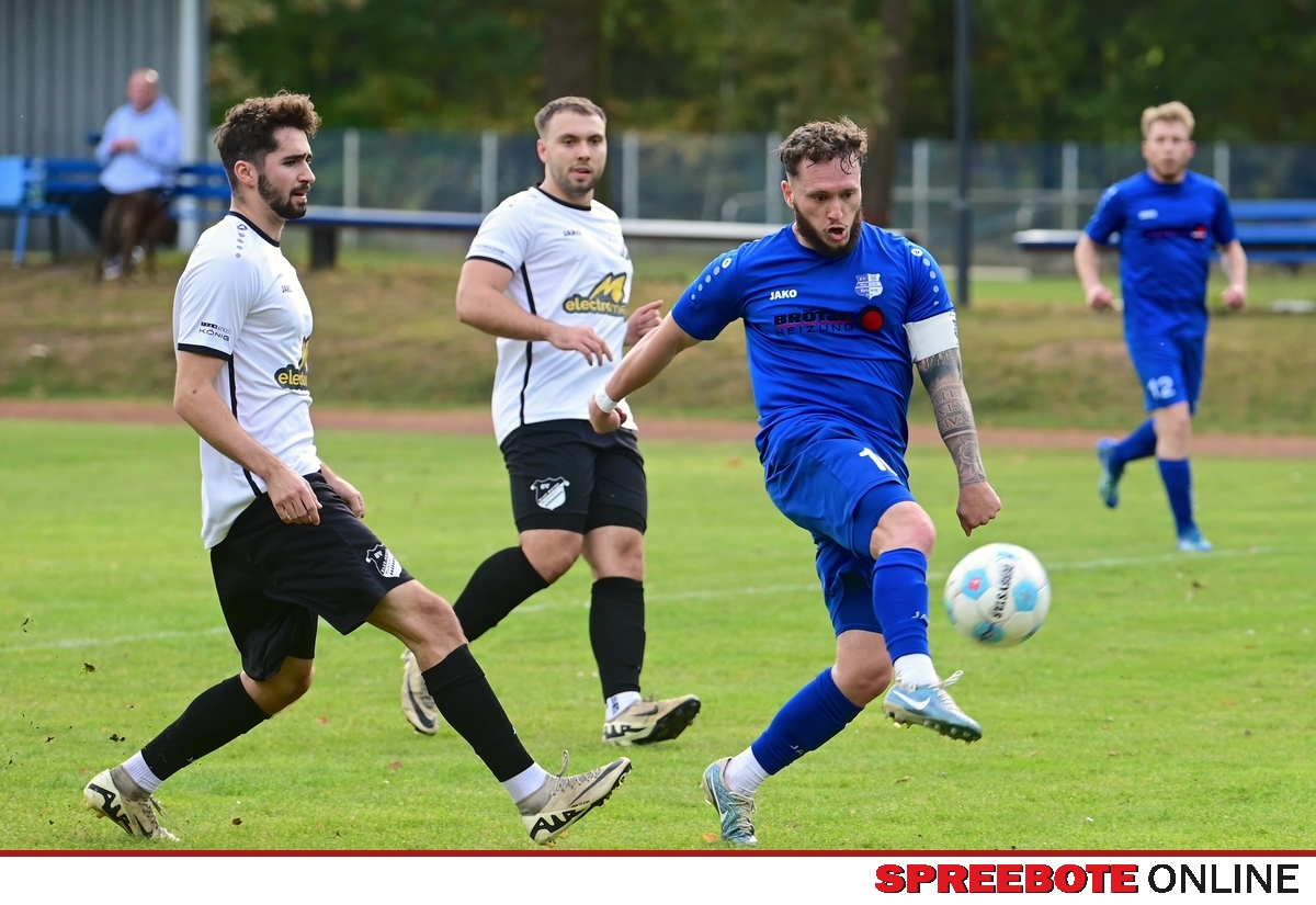Der FV Blau-Weiß Briesen begrüßte am 7. Spieltag der Landesklasse zum Derby den SV Blau-Weiß Markendorf. Schon kurz nach Spielbeginn zeichnete sich frühzeitig ab, wer das Spiel kontrollierte. Briesen übernahm sofort das Zepter und drängte den Gegner Markendorf in die eigene Hälfte. Für Markendorf war es nicht einfach, sich zu befreien, und nur mit wenigen Möglichkeiten kamen sie in die Nähe des Briesener Tores. Im Mittelfeld konnten sich die Markendorfer in Zweikämpfen zweimal den Ball vom Briesener Emilio Schön erkämpfen und setzten mit schnell ausgeführten Angriffen den Torwart Julian Simon unter Druck. Dieser kontrollierte die Bälle jedoch souverän. Briesen hingegen setzte kontinuierlich die Abwehr von Markendorf unter Druck und griff mit Marvin Benno Lähne, Paul Rabe, Dustin Noel-Veit und Jonas Noske über die Flügel und durch das Mittelfeld an. Sie brachten Unruhe in den Strafraum, allerdings zunächst ohne Erfolg. Auch die sieben Ecken für Briesen führten nicht zum erhofften Tor – zumindest noch nicht. Dann war es Kevin Schübler, der in der 21. Minute endlich das 1:0 erzielte. Markendorf versuchte daraufhin, Briesen früher im Spielaufbau zu stören, jedoch nur mit mäßigem Erfolg. Briesen witterte seine Chancen und versuchte viel, wobei sich der Kapitän der Briesener, Jacob Naskrenski, immer mehr in den Vordergrund spielte. Mit guten Ideen umging er oft die Abwehr, doch die Abschlüsse landeten entweder knapp neben dem Tor, am Pfosten oder an der Querlatte. Markendorf wirkte zunehmend gelähmt.