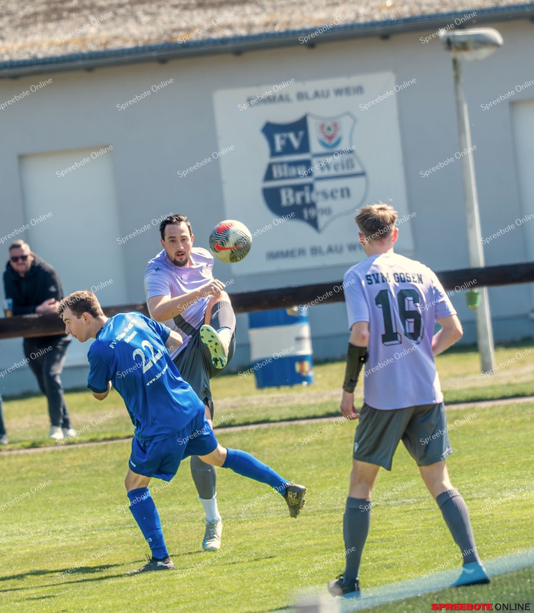 Der an siebter Stelle stehende FV Blau-Weiß Briesen II empfing den Tabellenneunten am Samstag, den SVM Gosen, im Sigmund-Balzer-Waldstadion. Kreisligafeeling pur. Eine regelrechte Hetzjagd entfachten die Gäste, die in puncto Schnelligkeit Briesen II mächtig unter Druck setzten. Briesen hatte arge Probleme, die Reihen zu schließen. Mit schnellen Flügelbewegungen kommt Gosen zu seinen Möglichkeiten, bis zur 11. Minute sind es schon vier Ecken, aber noch ohne Erfolg. Briesen setzt auf schnelles Passspiel bis in die Spitze, und Gosen bremst den Spielaufbau konsequent aus. Dann kommt es zu einem fatalen Fehler der Gastgeber. Sie können den Ball nicht kontrollieren, verlieren im Zweikampf den Ball. In der 18. Minute kann sich Joey Domke fulminant durchsetzen, gewinnt sogar das Duell mit dem letzten Verteidiger der Briesener, Ronny Anke, der sonst viel daransetzt, Briesen im Spiel zu halten. Doch im 16er wird es dann schon mal eng. Der Tormann kommt raus, will retten, Domke legt den Ball auf die Seite, Tor für die Gäste. Weckruf für Briesen, jetzt geht anscheinend mehr nach vorn, doch das richtige Mittel fanden sie in der Kürze noch nicht. Dafür hatte Gosen einen Lauf. Im Mittelfeld konnten sie sich im Zweikampf behaupten, ein straffer Schuss aus der Distanz brachte das Spiel wieder in Fahrt. Der Ball trifft die Innenlatte, der Ball fliegt wieder raus, die Verteidiger Briesens versuchen, den am Ball befindlichen Christopher König noch zu stoppen, doch der hatte den Torwart schon ausgetrickst, und es fiel in der 25. Minute das 0:2 für die Gäste. Briesen fing sich und erspielte sich ein paar richtig gute Chancen mit Alois Huth, der endlich wieder da ist, und George Krüger, die gemeinsam mit Hagen Brym die Sturmspitze bildeten, doch der Erfolg wollte sich nicht einstellen. Dafür kam Gosen zurück in der 28. Minute und legte nach, 0:3. Die Fehler der Gastgeber waren unübersehbar, das schlampige Abspielverhalten, das nicht konsequente Nachgehen machte es für Gosen einfach. Den Rückstand konnte Briesen bis zum Schluss nicht mehr aufholen, eine bittere Erfahrung, die sich sicher im Training niederschlagen wird.