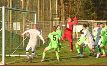 Eher ungewöhnlich und doch passiert es. Zum Nachmittagsspiel in der Kreisklasse treffen sich die SG Borussia und der VfB Steinhöfel II. Doch noch bevor der Ball rollen kann, liegt schon der erste Zündstoff in der Luft: Der Torwart der Gäste ist nicht da. Minuten vergehen, die Stimmung heizt sich auf, unruhige Blicke, hitzige Worte. Jeder fragt sich. Kann das Spiel überhaupt angepfiffen werden? Schließlich taucht der Schlussmann doch noch auf mit deutlicher Verspätung. Nach fast einer halben Stunde Wartezeit ertönt endlich der Anpfiff. Und kaum läuft die Partie, wird klar, Borussia will keine Zeit verlieren. Die Favoritenrolle war klar vergeben. Borussia derzeit auf dem vierten Platz in der Tabelle, dicht am Ligakonkurrenten RFC dran, und Steinhöfel, die derzeit auf dem 10. Rang logieren. Die Partie nimmt sofort Fahrt auf, und Borussia nimmt den Staffelstab in die Hand und treibt Steinhöfel vor sich her. Denn schon kurz nach Beginn macht Stenzel nach einem Fehler der Steinhöfeler Abwehr in der 9. Minute das 1:0 für Borussia. Steinhöfel, gefordert, versucht mit seinen Offensivkräften das Ruder herumzureißen, aber so richtig gefährlich werden sie nicht, da Borussias Abwehr wie ein Bollwerk steht. Schon der Spielaufbau gestaltet sich schwierig und Steinhöfel findet nicht das richtige Mittel. Borussia presst seinen Gast in die eigene Hälfte. So ist es auch nicht verwunderlich, dass es bis zur Pause schon 3:0 für die Gastgeber steht.