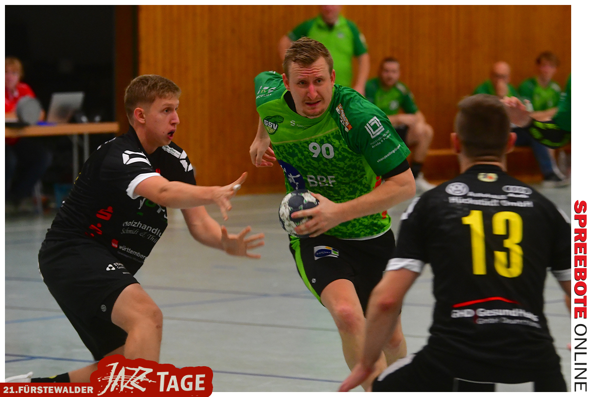 Das war nichts für schwache Nerven! Gemeint ist das Heimspiel der Handball-Männer des Grünheider SV I am Samstag, den 22. Oktober, in der Oberliga Ostsee-Spree gegen die SG Uni Greifswald/Loitz, die als Tabellen-Sechster der vierten Liga in die Löcknitzhalle gekommen war. Und vor allem in den letzten zwei Minuten der Partie vor rund 120 Zuschauern knisterte es nur so vor Spannung. Nachdem die GSV-Löwen um Chefcoach Axel Both und Co-Trainer Dirk Köhler in der zweiten Halbzeit nach dem Ausgleich zum 12:12 (31.) meist leicht vorn gelegen hatten, konnten die Gäste aus dem Norden zum 22:22 erneut ausgleichen – da waren 58:08 Minuten gespielt. Als dann Florian Folger die Grünheider wieder nach vorn brachte mit dem 23:22, zeigte die Uhr noch 35 Sekunden Spielzeit an. 20 Sekunden danach folgten der Gäste-Ausgleich, eine Auszeit der Gastgeber und anschließender Ballbesitz. In den verbleibenden 15 Sekunden warfen GSV-Spieler noch dreimal aufs Greifswalder Tor, doch der Ball zappelte nicht mehr im Netz.