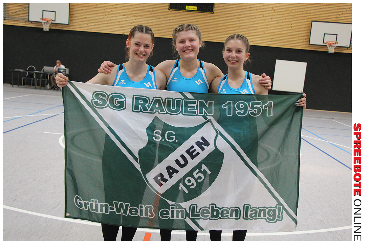 In der Gruppe Einer Kunstradsport Schülerinnen U11 gingen 7 Sportlerinnen an den Start. Ellen Fürst von der SG Rauen schaffte hier die Qualifikationsnorm. Ellen zeigte ihr Programm fehlerfrei vor und bekam nur einen minimalen Punktabzug von 1,05 Zählern von der Jury. Ellen überholte mit ihrer neuen persönlichen Bestmarke (37,65) eine Konkurrentin und holte sich den Silberpokal. Zu Platz 1 fehlten nur noch 0,39 Punkte. Für Ellen ist es der erste große Wettkampf. Der Titel ging an den ausrichtenden Verein – SV 05 Rehbrücke – Mathilda Langner. Eine Altersklasse höher – bei den Schülerinnen U13 – gingen 8 Sportlerinnen an den Start. Charlot-te Lange von der SG Rauen zeigte hier eine hervorragende Leistung. Leider musste sie einmal das Rad verlassen, was wertvolle 2 Punkte kostete. Mit einem sehr guten Ergebnis von 45,71 Zählern holte sich Charlotte den Bronzepokal. Die Punktzahlen an der Spitze lagen sehr eng beieinander. Der Titel ging nach Sachsen an Lene Tuchscherer vom ESV Lok Zwickau e.V. (47,50). Eines der größten Starterfelder war die Gruppe der Einer Kunstradsport Schülerinnen U15. Von der SG Rauen konnte sich Leonie Schoppe einen Platz bei der Teilnahme sichern. Leonie konnte mit ihrer sehr guten Performance gleich 4 Konkurrentinnen hinter sich lassen. Sie erreichte einen sehr guten 5. Platz.