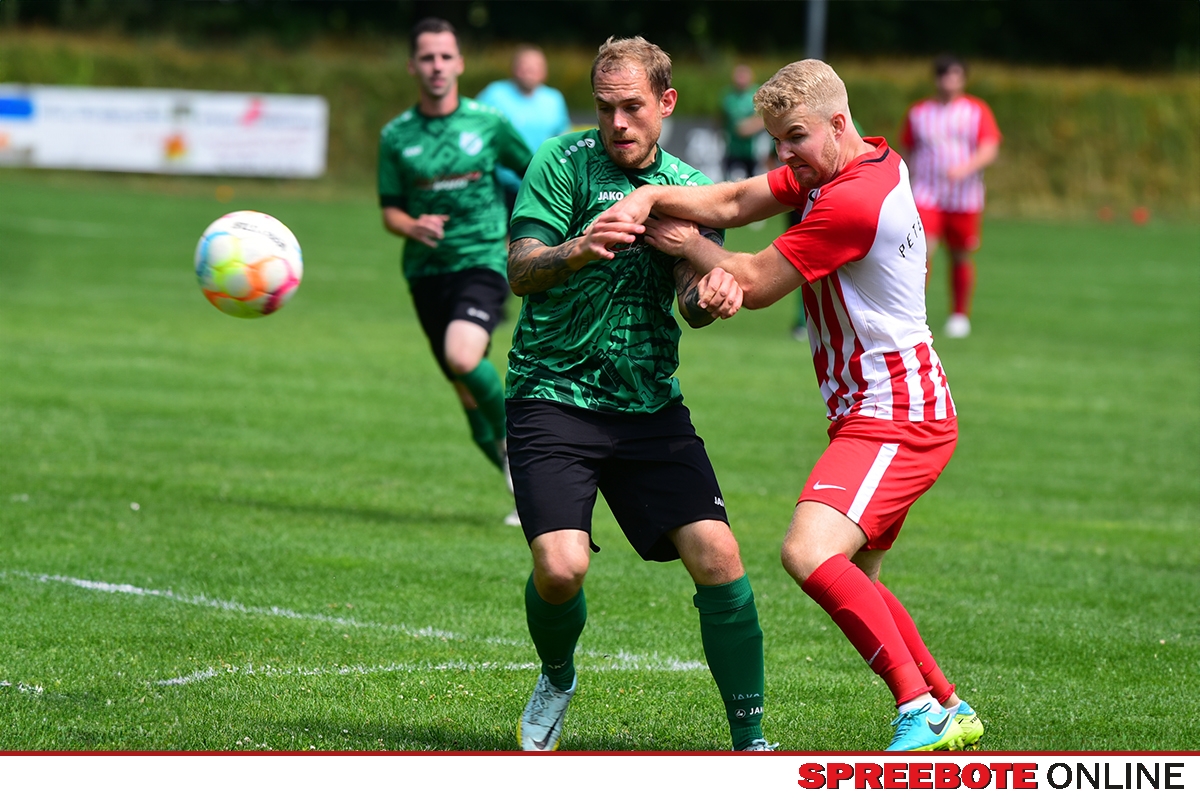Die Fußballer der SG Rauen haben eine beachtliche Saison hingelegt. Nach noch anfänglichem zögern und sich zurechtfinden mit der neuen Ausgangsposition formte sich eine wirkungsvolle und schlagfertige Fußballmannschaft. Das ist natürlich auf den Zusammenhalt des Teams zurückzuführen, denn ohne diesen Fakt würde es ohnehin nicht funktionieren. Mit dem Trainer Steven Becskei hat Rauen zudem auch einen gewieften Strategen an ihrer Seite, der mit so mancher Taktik das Spiel von der Außenlinie dirigierte. Das alles zusammengenommen macht die SG Rauen aus. Jetzt zum Saisonabschluss ging es am letzten Spieltag noch einmal hoch her am Samstag. Bei brütender Hitze, zu mindestens, wenn die Sonne da war, ging es um 12.30 Uhr mit Anpfiff durch den Schiedsrichter Dominic Julien Marko los. Wie schon so oft gesehen gibt es für Rauen nur einen weg und der ist nach vorn. Ihr Gegner, die Jungs des SV Rot-Weiss Petersdorf hatten natürlich den Durchblick und ließen Rauen wenig Atem. Sie pressten die Erwartung herunter und gingen mit Schnelligkeit in den Zweikämpfen in die ersten Minuten des Spiels. Rauen hatte ganz schön zu tun, sich dieser Revolte zu erwehren. Aber es gibt für alles ein Mittel. In der 14. Min ist der Kapitän Markus Wagner zur Stelle und bringt Rauen in Führung. Die Erleichterung wehrte allerdings nicht lange in der 23. Min durch einen Abwehrfehler kann Oliver Giertz den Ausgleich manifestieren. Prompt geht es nun für Rauen wieder los und Michele Hähnlein bekommt den Ball nach einer Ecke zu fassen und köpft das Runde in das Eckige. Jubel auf den Rängen. Und Petersdorf versucht den gleichen Hattrick wie schon beim ersten Tor und macht mit Oliver Giertz in der 41. Min wieder den Ausgleich. Auch hier die Fans außer sich vor Freude, mit Sprechgesängen. Was für ein Spiel zum Saisonabschluss. Die Pause auf beiden Seiten im Schatten unter den Pappeln, mit den richtigen Worten an die Mannschaften agierten die Trainer. Zweite Halbzeit, beide Teams im Angriffs-Modus, die Zweikämpfe werden ruppiger.