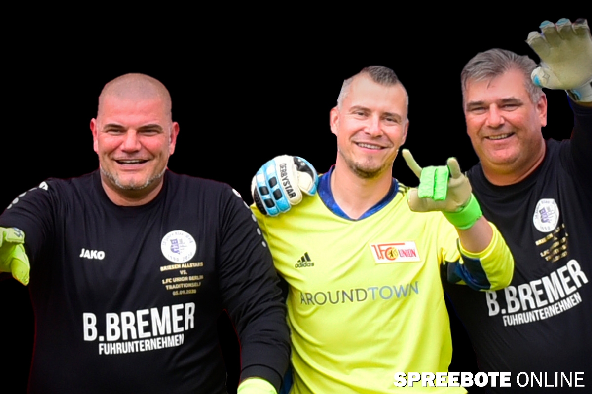 Am vergangenen Samstag war es nun endlich soweit: Das lange geplante und vom Vorstand des FV Blau-Weiß 90 Briesen organisierte Jubiläumsfest konnte unter Einhaltung der Corona-Regeln endlich stattfinden. Der Höhepunkt war ganz sicher das Spiel der Briesen Allstars gegen die Traditionsmannschaft des 1.FC Union Berlin. Patrick Sauer, Geschäftsführer des FV Blau-Weiß 90 Briesen, hatte für diesen besonderen Tag die Traditionsmannschaft begeistern können, hier ein Freundschaftsspiel zu machen. Für beide Seiten eine Ehre sondergleichen. Der Run auf die Plätze beim Spiel gegen den 1. FC Union Berlin war kaum zu stoppen, so viele Spieler wollten gern mit dabei sein auf dem Feld. Besonders Patrick Sauer, der das Spiel initiiert hatte und selbst auch für Union brennt, war die Aufregung sichtlich anzumerken, als der Zeitpunkt des Eintreffens der Traditionself aus Berlin näher rückte. Auch die Verteilung der extra angefertigten Trikots für die Briesen Allstars war eine durchaus emotionale Angelegenheit. Großer Dank gilt hier neben Daniel Wichary, der sich um Beschaffung und Beflockung gekümmert hatte, auch dem Sponsor Burkhard Bremer Fuhrunternehmen und drei weitere Sponsoren für ihr Engagement. Nachdem der Vereinsvorsitzende Andreas Bendel seine Festrede gehalten hatte, sollte es bald losgehen mit 2 x 35 Minuten geballter Fußballkompetenz auf und neben dem Platz. Doch vorerst wurde das obligatorische Gemeinschaftsfoto in Szene gebracht. Im Übrigen zwei Mal, weil die Schiedsrichter beim ersten Mal nicht mit drauf waren und verärgern will man ja diese auch nicht und schließlich möchte man ja ein gutes Verhältnis für die kommenden Spiele haben.