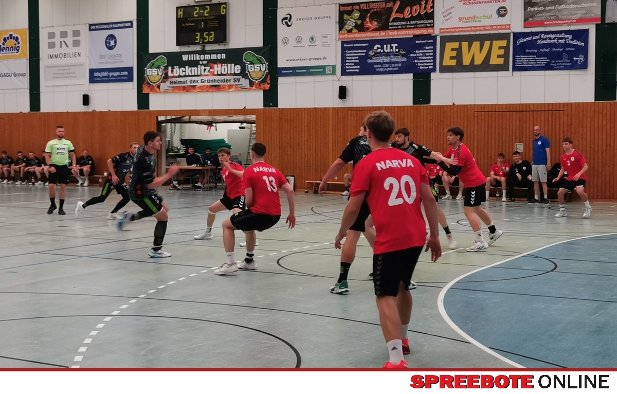 Das sah schon mal ganz gut aus: Die Männer des Grünheider SV haben in der Vorbereitung auf die neue Viertliga-Saison 2025/26 ihr erstes Testspiel absolviert. In der Löcknitz-Halle, in der sich trotz der Anbau-Arbeiten am Haupteingang immerhin rund 30 Zuschauer eingefunden hatten, besiegten die Männer von der Löcknitz am Donnerstagabend den Oberligisten SG NARVA Berlin nach dreimal 25 Minuten mit 41:33 (29:21, 15:12). Erfolgreichster Grünheider Werfer war Florian Folger mit zehn Toren, gefolgt von Niclas Thurow (7) und Neuzugang Max Mißling (6). Das nächste Trainingsspiel steigt für das Team um Chefcoach Tilo Leibrich und Co-Trainerin Isabell Reiner am kommenden Freitag, 15. August 2025, ab 19.30 Uhr ebenfalls in der Löcknitz-Halle, gegen den Brandenburg-Oberligisten MTV Wünsdorf 1910.
