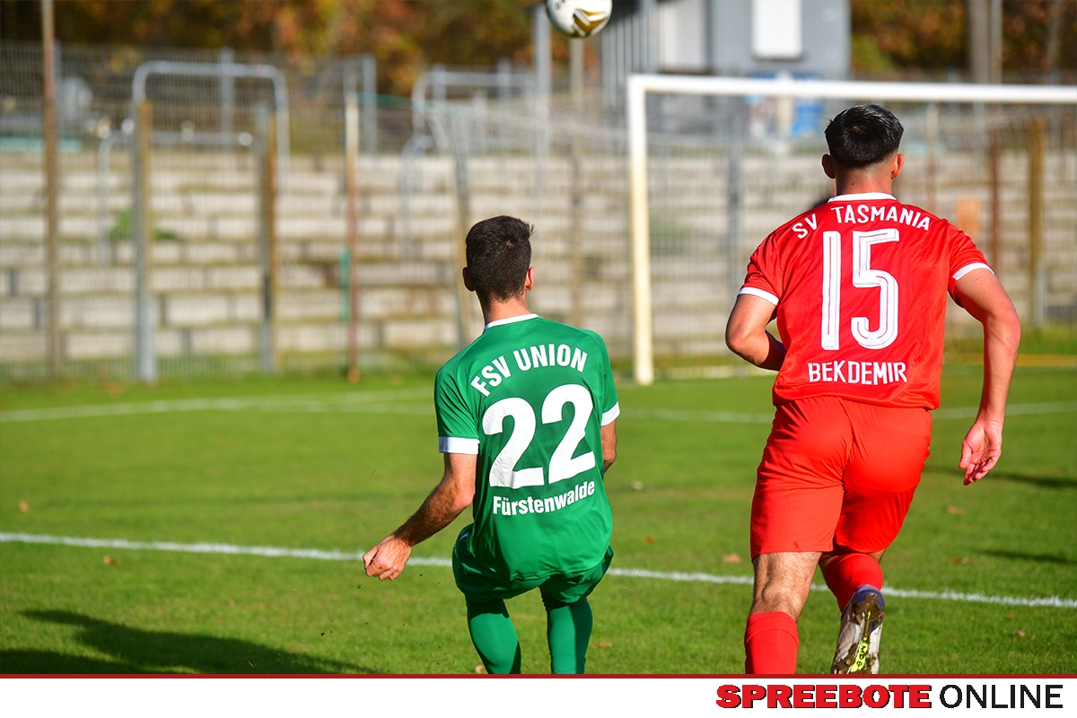 Nicht sonderlich gut gespielt, aber am Ende siegreich, so umriss Union-Cheftrainer Kenny Verhoene das Oberligapunktspiel seiner Mannschaft am Samstag beim SV Tasmania in Berlin-Neukölln. Im Hinspiel hatten sich beide Regionalliga-Absteiger torlos 0:0 getrennt. Die 121 anwesenden zahlenden Zuschauer sahen auch diesmal kein sonderlich hochklassiges Spiel, aber sie konnten diesmal doch einige Torerfolge miterleben. Abwartend agierten zunächst die Unioner und auch nicht gerade angriffslustig wirkten die Tasmanen. Die Tasmanen machten zunächst das Spiel, aber auf Grund von Fehlpässen hatten die aufmerksam lauernden Unioner gleich drei Mal in der ersten halben Stunde die Möglichkeiten zum Führungstreffer. In der 36. Minute verhinderte die Union-Verteidigung die Torchance der Tasmanen und leitete mit einem langen Befreiungsschlag selbst die 1:0-Führung ein. Anel Hamzic umspielte noch den herausgeeilten Keeper und schob den Ball dann ins leere Tor zum Union-Führungstreffer. Der Tasmane Neil-Nigel Bier erzielte nach brillantem Pass von Maximilian Storm in der 39. Minute bereits den 1:1-Ausgleichstreffer. Nach einem rüden Foulspiel an der Mittellinie zeigte der Schiri Tennes dem Tasmanen Philip Schulz die Rote Karte und somit musste er vorzeitig in der 43. Minute den Platz verlassen. Trotz Unterzahl versuchten die Tasmanen im zweiten Spielabschnitt Druck auszuüben, aber die Fürstenwalder Defensive konnte dem widerstehen. Sie setzten ihrerseits auf Konter und blieben somit auch stets gefährlich für die Tasmanen. In der 85. Minute leisteten sich die Tasmanen einen gefährlichen Querpass im Mittelfeld und diese Ungenauigkeit nutzte Dries Cortjens für seinen Sturmlauf. Er eroberte das Leder, eilte allen Tasmanen davon auf ihr Tor zu und vollendete mit präzisem Schuss in den Kasten seine Aktion erfolgreich mit dem Treffer zum 2:1 für den FSV Union. Am Ende sprang somit ein nicht unverdienter Sieg für die Fürstenwalder heraus und drei Punkte auf ihr Konto, welches jetzt bei 40 Punkten (dem Saisonziel) angelangt ist. Ohne Abstiegsdruck können die Unioner nun in die restlichen sechs noch zu bestreitenden Punktspiele gehen. Am Saisonende ein einstelliger Tabellenplatz sollte nun das Ziel sein. Das nächste Punktspiel folgt bereits am Freitagabend (Anstoß 19 Uhr) in der heimischen BONAVA-Arena gegen den Regionalliga Absteiger Optik Rathenow.
