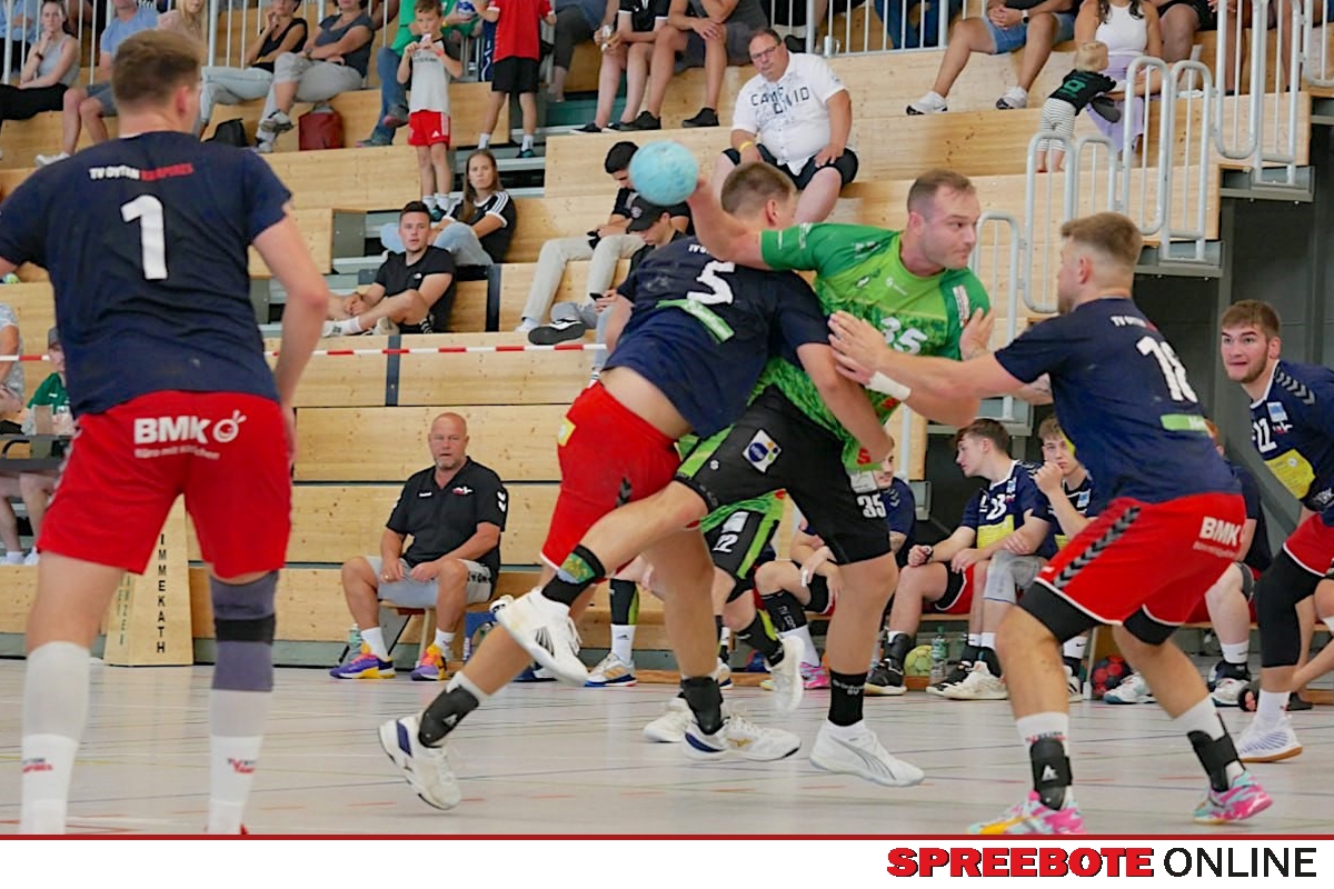 Viele Erfahrungen und Erkenntnisse gesammelt sowie große Moral gezeigt – so lässt sich der sportliche Ausflug der Männer des Grünheider SV I am vergangenen Samstag, 26. August, nach Sachsen-Anhalt kurz zusammenfassen. Das Team aus der Handball-Oberliga Ostsee-Spree um Chefcoach Tilo Leibrich und Co-Trainer Dirk Köhler belegte bei der Premiere des hochkarätig besetzten Altmark-Jeetze-Cups des SV Eintracht Immekath in Beetzendorf den fünften Rang im Sechserfeld. Dabei setzten sich die GSV-Löwen im Platzierungsspiel knapp mit 19:18 nach Siebenmeterwerfen gegen den TV Oyten (Oberliga Nordsee) durch. Den Turnier-Sieg holte sich der VfB Fallersleben (Oberliga Niedersachsen), gegen den die Grünheider im Gruppenspiel der Vorrunde ein 15:15 erreichten. Zudem gab es dort ein 9:15 des GSV gegen den späteren Zweiten SV Oebisfelde (Sachsen-Anhalt-Liga).