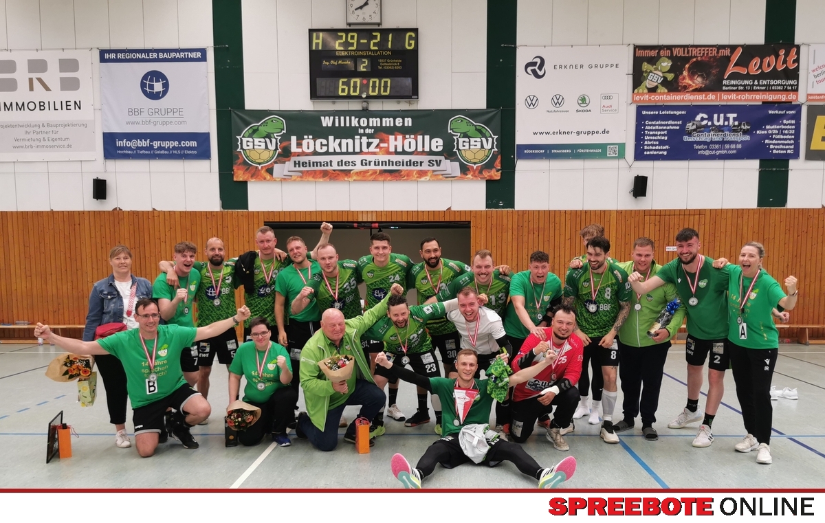 Eine prächtige Kulisse und emotionale Momente waren am vorigen Samstag der Rahmen für das das letzte Heimspiel der Handball-Saison 2024/2025 des Grünheider SV I in der Oberliga Brandenburg. Und das Team um Chefcoach Tilo Leibrich und Co-Trainerin Isabell Reiner ging unter dem Jubel der rund 180 Zuschauern als Sieger von der Platte der Löcknitzhalle. 29:21 (16:10) hieß es am Ende gegen die HSG RSV Teltow/Ruhlsdorf, die von Platz fünf auf sechs der Elfer-Staffel mit nun 20:18 Punkten abrutschte. Die Grünheider (jetzt 30:8 Zähler) standen schon vorher als Zweiter fest und bekamen am Samstagabend vom Handball-Verband Brandenburg (HVB) ihre Medaillen als Vize-Meister hinter der HSG Ahrensdorf/Schenkenhorst (32:6 Punkte) überreicht. Kapitän Tom Griebsch war mit zehn Toren bester Grünheider Werfer in der letzten Heimpartie.