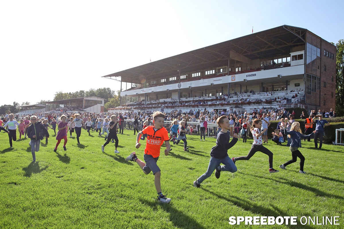 Bei spätsommerlichen Temperaturen haben weit über 7.000 Besucher beim Großen Familienfest den Brandenburg-Renntag auf der Rennbahn Hoppegarten gefeiert. Wo sonst nur unsere vierbeinigen Stars an den Start dürfen, stürmten über 100 Kinder das Geläuf. Die kleinen Galoppsportfans nutzten die Gelegenheit, um im Mini-Grand Prix über 100m anzutreten.