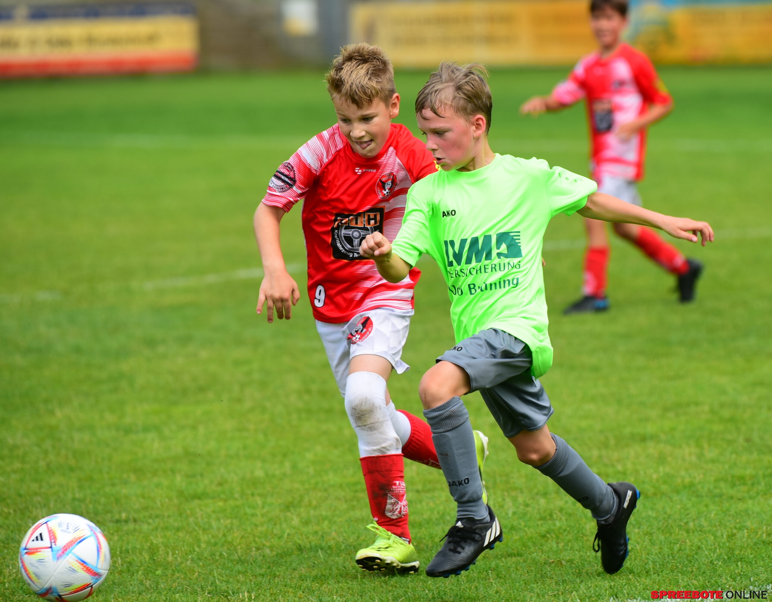 Familiensonntag in der Bonava Arena in Fürstenwalde. Die vier F-Junioren-Mannschaften aus dem Kreis Ostbrandenburg kämpften um den Meistertitel. An den Start gingen die beiden Staffelsieger Storkower SC und Grün-Weiß Rehfelde, sowie die zweitplatzierten TSG Rot-Weiß Fredersdorf/Vogelsdorf und SV Victoria Seelow. Der Fußballplatz wurde sichtlich geteilt und gekreidet, sodass die beiden Spiele passgenau nach allen Regeln der Kunst stattfinden konnten. Eltern und mitgereiste Fans haben sich super vorbereitet, lautstark ihre Mannschaften angefeuert und frenetisch jedes Tor gefeiert. Was für eine beispielhafte Stimmung, wie bei einem Spiel des FSV Union Fürstenwalde in der einstigen Regionalliga. Cheforganisator und Jugendleiter des FSV Union Mitsch Rieckmann hatte sich mit dem Verein um die Austragung beworben. Der Fußballkreis Ostbrandenburg hatte zugestimmt und die Meisterschaft konnte am Sonntag in der Bonava-Arena stattfinden. Lob und Dankeschön zugleich geht an die Familie Wichary, die die Versorgung komplett in Eigenregie übernommen hatte und für die Gäste und die fußballbegeisterten Kids die obligatorischen Genüsslichkeiten bereithielten. Auch den Ordnern Christian, Alex, Yoshi und Vincent, vielen Dank für eure Unterstützung. Gespielt wurden zunächst die Halbfinals 2 x 20 Minuten. Dort setzte sich Rehfelde am Ende recht deutlich mit 8:1 gegen Seelow durch. Spannender war es auf der Gegenseite, wo die Storkower erst in den Schlussminuten alles klarmachten und mit 5:1 gegen Fredersdorf/Vogelsdorf brillierten. Nach einer 30-minütigen Pause fanden dann auch gleichzeitig die Platzierungsspiele statt. Und die hatten es in sich. Die Victorianer führten recht passabel mit 4:1 gegen die TSG Rot-Weiß Fredersdorf/Vogelsdorf. Doch die rotweißen Kicker kamen kurz vor dem Ende noch auf 3:4 heran. Bis zum Schlusspfiff blieb das Ergebnis stehen. Noch spannender und emotionaler war es dann im Finale. Nach der Führung von Storkow, drehte Rehfelde die Partie zu ihren Gunsten und es blieb lange Zeit bis zum Ende der Partie beim 4:3 für die Grünweißen. Sie hielten der Angriffswucht des Storkower SC stand, konnten per Konter sogar noch das 5:3 erzielen und sind somit F-Junioren-Meister in Ostbrandenburg.