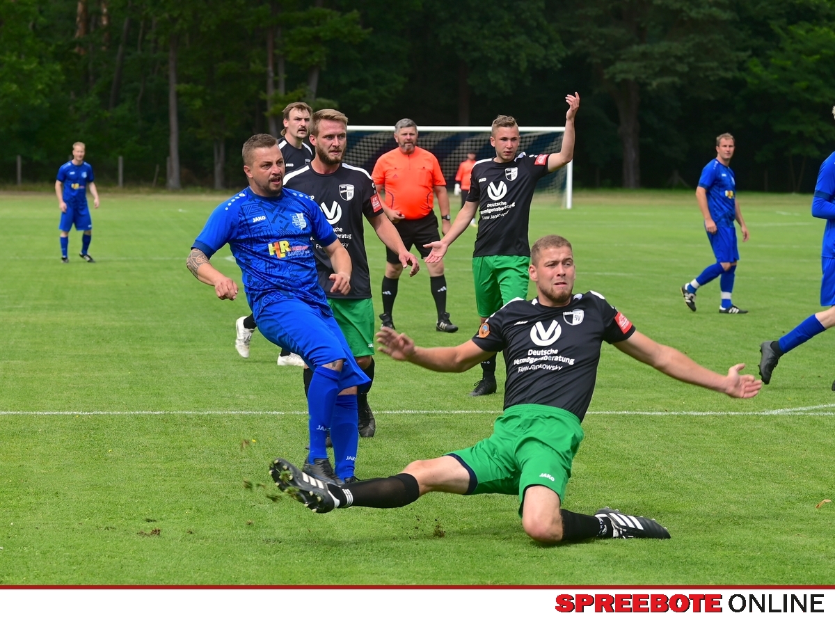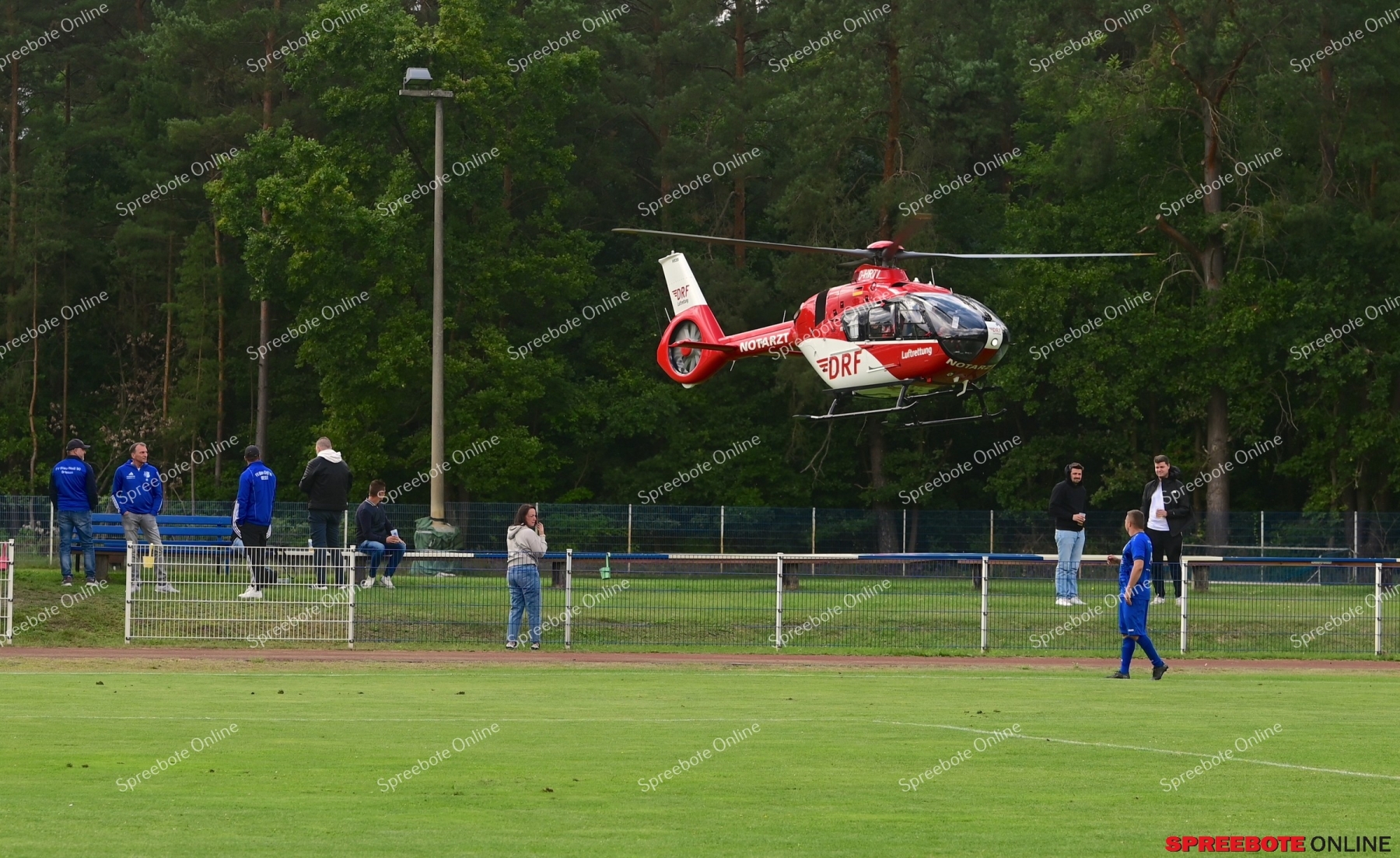 Die Gäste agierten zum Teil unsauber – besonders bitter: Hannes Augustin, der nach einem Jahr Abstinenz sein Comeback feiern wollte, wurde rüde gefoult und musste das Feld verlassen. Der Schock saß tief, kurz darauf kreiste über den Baumwipfeln sogar der Rettungshubschrauber vom Helios Klinikum aus Bad Saarow. Augustin hatte über starke Schmerzen geklagt – und wurde vor Ort medizinisch versorgt. Gute Besserung an dieser Stelle!