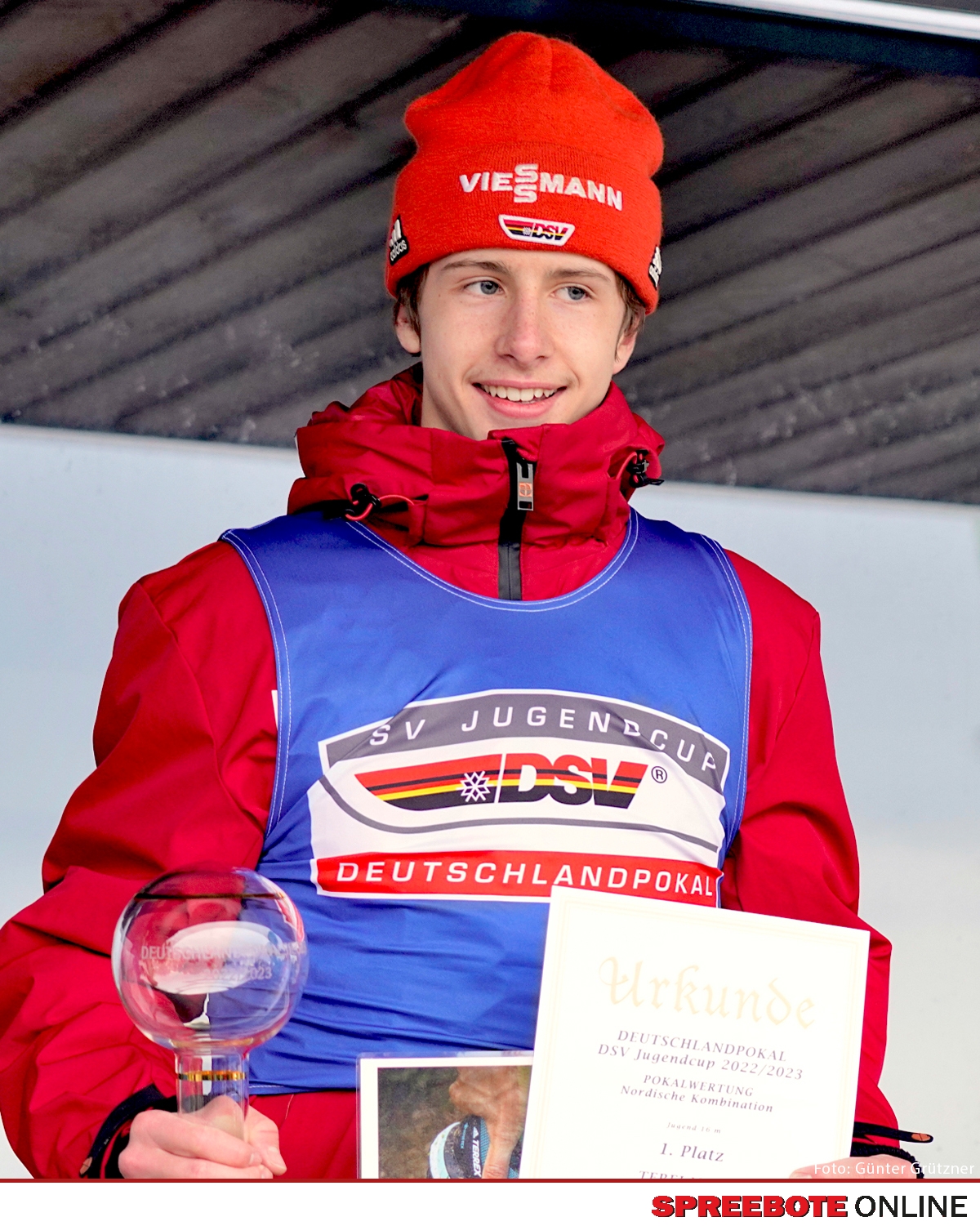 Oberwiesenthal ist immer eine Reise wert. Für die Fangemeinde des Bad Freienwalder Wintersportvereins war am Wochenende das Ziel die Deutsche Jugendmeisterschaft im Spezialsprunglauf und in der Nordischen Kombination am Fichtelberg, bei der auch Max Unglaube und Moritz Terei am Start waren. Witterungsbedingt waren diese Wettkämpfe nicht nur für die Sportler eine Herausforderung. Die Organisatoren vom Wintersportverein Erzgebirge Oberwiesenthal schafften das Wunder, bei 20 Grad und Sonnenschein sowohl die Fichtelbergschanze als auch die Loipe in der dortigen Sparkassen-Ski-Arena in einen Zustand zu bringen, der faire Wettkämpfe erlaubte, zumal es parallel zu den Meisterschaften auch noch Biathlonwettkämpfe gab. Max Unglaube beendete seine Wettkampfserie mit einem sechsten Rang im Einzel, was ihm in der Pokalwertung in der beendeten Saison diesmal einen siebenten Platz bescherte, nachdem er in den vorangegangenen vier Jahren jeweils als Sieger hervorgegangen war. Im Mannschaftswettbewerb um den Deutschen Jugendmeistertitel gelang ihm dann am Sonnabend gemeinsam mit Radu Borca und Robin Kloss aus Willingen und Lukas Nellenschulte aus Winterberg die Revanche. Bei den Landes-Mixedmannschaften wurden sie Deutscher Meister. Unter allen Mannschaften mussten sie nur dem Landes-Team aus Baden-Württemberg knapp den Vorrang lassen. Moritz Terei machte es in der Nordischen Kombination noch besser. Im Einzelwettbewerb belegte er einen hervorragenden zweiten Platz und sichere sich damit souverän den Sieg in der Wertung des Deutschlandpokals. Diesen konnte er dann am Sonntag strahlend entgegennehmen. Vervollständigt wurde das hervorragende Wochenendergebnis durch den zweiten Rang in der Gesamtwertung des Deutschlandpokals der jungen Damen im Spezialsprunglauf durch Alvine Holz, die diesmal leider krankheitsbedingt nicht am Start war, wie ihr Trainer mitteilte. Im Verbund mit den bereits in den vergangenen Wochen erreichten Endergebnissen in den verschiedenen nationalen und internationalen Pokalwertungen haben die Sportlerinnen und wieder bewiesen, dass der Leistungsstützpunkt in Bad Freienwalde ein würdiger sportlicher Botschafter für das Land Brandenburg und die Region um Bad Freienwalde ist. Allen, die an den Erfolgen des Wintersportvereins 1923 Bad Freienwalde Anteil haben, gilt dafür ein herzliches Dankeschön und macht weiter so!