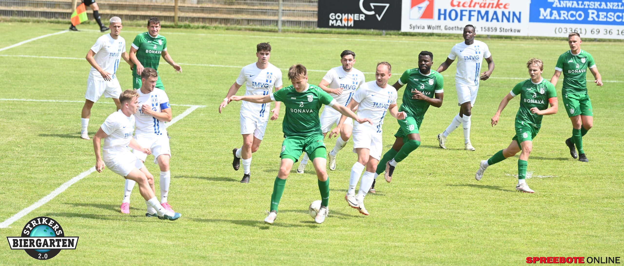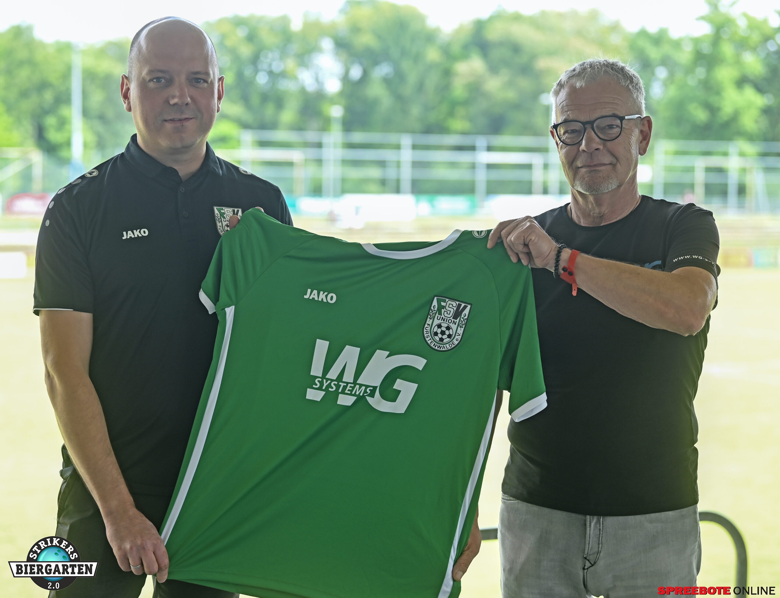 Noch vor Beginn des letzten Heimspiel des FSV Union Fürstenwalde präsentierte der neue Präsident Marcus Haufe den neuen Hauptsponsor des Vereins WG Systems. Am vergangenen Samstag fand der letzte Spieltag in der Oberliga des NOFV statt und dabei hatte der FSV Union Fürstenwalde in der heimischen Arena die Berliner Mannschaft des SC Staaken zu Gast. Das Hinspiel anfangs des Jahres hatten die Berliner bereits mit 4:1 für sich entscheiden können und nun auch im Rückspiel konnten sie als knapper glücklicher aber nicht unverdienter Sieger den Platz verlassen. Man könnte meinen naja wie gehabt, denn mit dieser Niederlage haben die Unioner in der Rückrunde der Oberligasaison 2023/24alle Spiele verloren. Betrachtet man nun aber speziell das letzte Oberligaspiel, so war diese Niederlage am Ende doch etwas unglücklich für die Fürstenwalder erfolgt. Nach dem Anpfiff vom Schiri Seib aus Görlitz vor 131 zahlenden Zuschauern und weiteren Beobachtern begannen beide Mannschaften offensiv ohne Abtastphase. Bereits in der 5. Minute hatten die Berliner aus Nahdistanz eine Dreifachchance, scheiterten aber jeweils am hervorragend reagierenden A-Junior Keeper Tobias Rudolph, welcher diesmal im Union Kasten stand. In der Folgezeit hatten dann die Unioner zwei Riesenchancen, Mlynarczyk nach Vorlage von Muca (12.Min.) und Muca selbst (22.Min.), zum Führungstreffer, welche der Berliner Keeper Zhemchuzhnyi gerade noch vereiteln konnte. In der 36. Minute war er dann aber machtlos beim Treffer von Muca aus Nahdistanz, da auch seine Abwehrreihe zu unentschlossen nach dem Eckball reagierte. Kurz danach (40.Min.) hatte Union Oldie „Mietze“ Mlynarczyk gar die Riesenchance, allein vorm Keeper, zum 2:0 für Union. Er zögerte aber zu lange und schoss den Keeper an statt den Heber über ihn an zusetzen. Im zweiten Spielabschnitt ging die Partie auf Augenhöhe offensiv weiter. Die Unioner blieben weiterhin Torgefährlich, die Berliner hatten nun aber die klaren Chancen. Ein Pfostenschuss von Boateng in der 56. Minute führte für Staaken noch nicht zum Erfolg. In der 67. Minute beförderte der gerade eingewechselte Henke nach Eckball aber das Leder in den Union Kasten zum 1:1 Ausgleichstreffer. Nach Foul und erneuter Gelber Karte musste in der 75. Minute der Unioner Yvan Ngoyou mit Gelb/Rot vorzeitig den Platz verlassen. Trotz der Unterzahl konnten die Unioner die Angriffe der Berliner kontrolliert abwehren. Eine Minute vor Spielende, beim straffen Schuss vom Staakener Torjäger Gigold von der rechten Seite aus, waren die Unioner aber machtlos und mussten den Berliner Siegtreffer noch kassieren. Nix also mit dem schon erhofften Punktgewinn im letzten Oberligaspiel für die Fürstenwalder. In der kommenden Saison geht es nun als Oberliga Absteiger in der Brandenburg Liga weiter, aus der sie nach der Saison 2010/11 in die Oberliga aufgestiegen waren und von 2016 bis 2022 gar in der Regionalliga Nordost spielten. Mit Mannschaften aus diesen Zeiten, wie Schöneiche, Frankfurt/Oder, Brandenburg-Süd, Neuruppin und Altlüdersdorf, werden sie dann wieder zusammen treffen.