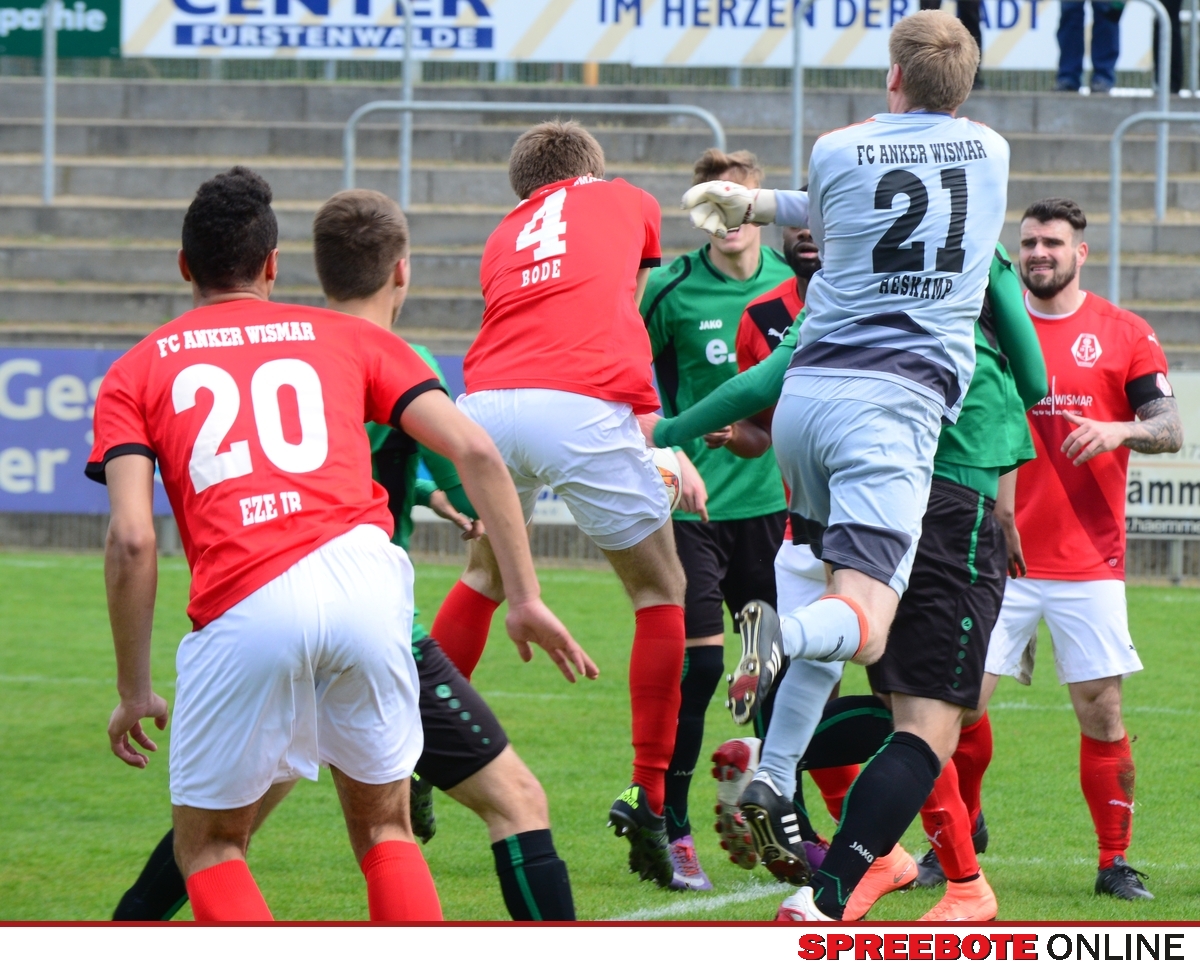 Nach dem Punktspielfreien Osterwochenende in der Oberliga musste der FSV Union Fürstenwalde am vergangenen Sonntag im Rahmen des 22. Spieltages auswärts bei Anker Wismar antreten. Die Ostseestädter hatten bei ihren bisherigen 9 Heimspielen nur dreimal den Platz als Sieger verlassen können (dazu 1xU und 5xN) und somit konnte man schon leise Hoffnungen aus Fürstenwalder Sicht hegen das die Unioner etwas zählbares im Abstiegskampf mitnehmen könnten. Dies stellte sich dann aber sehr schnell als Wunschtraum heraus. Unverständlich bereits vor dem Anpfiff die Tatsache, dass die Unioner nur mit einem 13 Mann Kader antraten, also nur mit zwei statt sieben möglichen Wechselspielern auf der Bank. Ein Armutszeugnis seitens der Sportlichen Leitung und des Männer Trainerstabes, da ja die „. Und 3. Männer, sowie die A-Junioren, kein Spiel hatten am Sonntag. Auf der Vereinsseite der Unioner verzeichnet ist der Kader mit 27 Feldspielern und drei Torleuten. Die 234 Zuschauer im Stadionkomplex Wismar sahen dann eine von Anbeginn überlegende Heimmannschaft. Bereits nach zwei Minuten lag den Anker Fans der Torschrei auf den Lippen. Nach weiteren guten Chancen der Anker Elf landete dann aber in der 15. Minute der Ball nach Kopfballtreffer durch Marco Bode im Union Kasten. Per Solo aufs Tor zu erzielte in der 24. Minute Lucas Meyer bereits das 2:0 für Wismar. Vier Minuten später war erneut Marco Bode zur Stelle, welcher ein Ballabklatschen vom Union Keeper nutzte und das Leder ins Netz schob zum 3:0. Julian Hahnel erhöhte bereits in der 30. Minute nach Vorlage von Thesenvitz den Spielstand auf 4:0 für Anker Wismar. Mit seinem dritten Treffer in dieser Partie erzielte Marco Bode noch vor der Pause (41. Min.) das 5:0 für Anker. Zur zweiten Halbzeit brachte der Union Trainer Tristan Kriem für Umran Saied neu ins Spiel der bis dato schwach agierenden Unioner. Erneut mit einem Solo Auftritt allein aufs Tor zu erzielte Lucas Meyer in der 48. Minute bereits das 6:0 für Anker. Die erste und einzige echte Torchance für die Unioner hatte in der 58. Minute Arne Böttcher, aber Anker Keeper Kurth war auf dem Posten und klärte zur Ecke. In der 60. Minute nahm der Anker Trainer gleich fünf Wechsel vor und gab somit seiner zweiten Reihe noch eine gute Spielchance. Weitere Treffer gelang aber Anker nicht mehr auch auf Grund der guten Leistung vom Union Keeper Soraru. Insgesamt aber ein hochverdienter nie gefährdeter klarer 6:0 Sieg für Anker Wismar. In der fair geführten Partie musste der Berliner Schiri Bela Wiethüchter keine Karte zeigen, was ja auch nicht alltäglich ist. Für die Fürstenwalder, nach der schwachen Leistung und bitteren 6:0 Niederlage stehen nunmehr nach 21 Spielen weiterhin nur 8 Punkte mit einem Torverhältnis von 1(:66. Im Schnitt also pro Spiel 3 Gegentore und nicht mal einen Treffer. Bei einem weiter so ist wohl der angestrebte Klassenerhalt nicht zu schaffen. In den zwei nun folgenden Heimspielen geht es gegen die Lichtenberger Mannschaften.