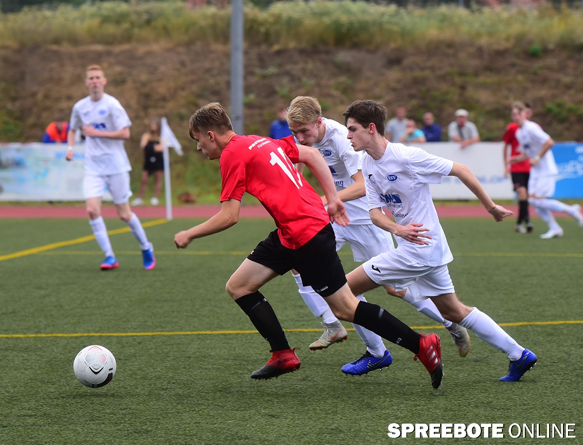 Am Sonntag fand im Pneumant Sport Forum in Fürstenwalde das Nachholspiel im Pokal der U19 statt. Dieses Spiel wurde noch vor Saisonende und in weiser Voraussicht in der sich abzeichnen Corona Pandemie Anfang März abgesagt. Der neue Termin für dieses Spiel war nun am Sonntag anberaumt worden. Das Wettergeschehen hatte es in sich, am Vortag waren die Temperaturen auf 30 Grad geklettert und jetzt war es schwül drückend und immer mal wieder Regen keine so optimalen Bedingungen. Die U19 der BSG Pneumant ist mit ihrem jungen Kader angetreten das Pokalspiel zu meistern. Der Regionalligisten vom RSV Eintracht trat mit einer stolzen und gefestigten Mannschaft an. Es war schon von Anfang an klar, dass das Definitiv es nicht einfach werden würde und man sich dementsprechend auf den Gegner einstellen musste. Schlussendlich konnte die Mannschaft aber gegen einen Regionalligisten 90 Minute läuferisch und kämpferisch sehr gut mithalten. Es sprangen sogar zwei gut herausgespielte Torchancen für Leon und Kelvin heraus. Dennoch musste man sich dem Gegner mit einem 4:0 geschlagen geben.