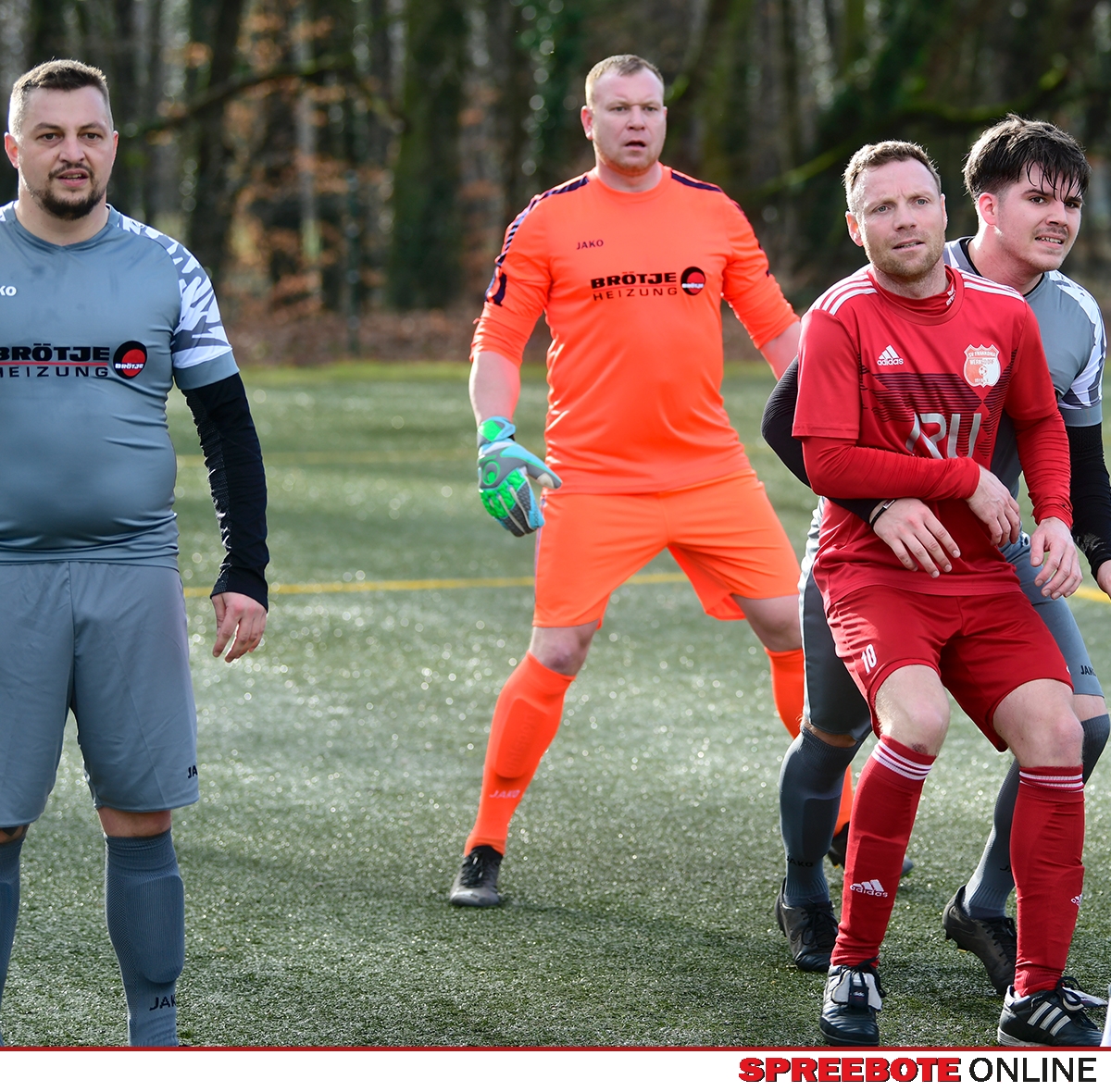 Beide Mannschaften, der FV Blau Weiß Briesen und der SV Frankonia Wernsdorf, trafen sich am Samstag auf dem Kunstrasenplatz des VfB Steinhöfel zum lang geplanten Freundschaftsspiel. Nach der Winterpause genau das Richtige für die Mannschaften, um sich wieder der Lieblingsbeschäftigung zu widmen. Sogar das Wetter spielte mit. Warme Temperaturen um die 15 Grad schienen eine Menge möglich zu machen. Bekannte Gesichter aus längst vergangenen Tagen sahen wir wieder: Roland Richter und Gordon Griebsch, die einst beim FSV Union Fürstenwalde um die Punkte in der ersten Männermannschaft stritten. Beide Teams begannen sofort druckvoll zu spielen, zumeist über den rechten Flügel und versuchten mit schnellem Umkehrspiel den Gegner zu pressen. Gelungen ist das den beiden nicht so oft, wobei Briesen sich mit der Zeit mehr durchsetzen konnte. Bereits in der 28. Minute machte Christoph Hanke das erste Tor klar. Eine Minute später ereignete sich ein Missgeschick, Roland Richter vom SV Frankonia Wernsdorf, der in hoher Geschwindigkeit Richtung Briesen unterwegs war, wurde von einem Briesener Spieler festgehalten. Es wäre eigentlich nur ein Foul gewesen, doch der Schiedsrichter entschied nach zusätzlichem Meckern durch Richter auf gelb/rot gegen ihn. Auch das energische Auftreten der Briesener, die Anzweiflung des Platzverweises und dass es sich hierbei um ein Freundschaftsspiel handelte, konnte den Entschluss des Schiedsrichters nicht revidieren. Dann hielt dieser sogar noch das Spiel an, weil Richter die Heuweg Arena noch nicht verlassen hatte. Die Entrüstung der Spieler und Fangemeinde über den Entschluss des Schiedsrichters war spürbar angeheizt. Nach Wiederanpfiff knockten die Briesener in der 33. Minute abermals mit Christoph Hanke die Wernsdorfer aus und machten das 2:0. Mit einem Feldspieler weniger ist es mit der Strategie meistens dahin. Die zweite Halbzeit entschied sich mit Jonas Kwast in der 58. und 83. Minute, Horst Nico Laube in der 59. Minute und Kevin Schübler in Minute 86 das Spiel und Briesen führte mit 6:0. Den Anschlusstreffer erzielte Patrick Jahn in der gleichen Minute.