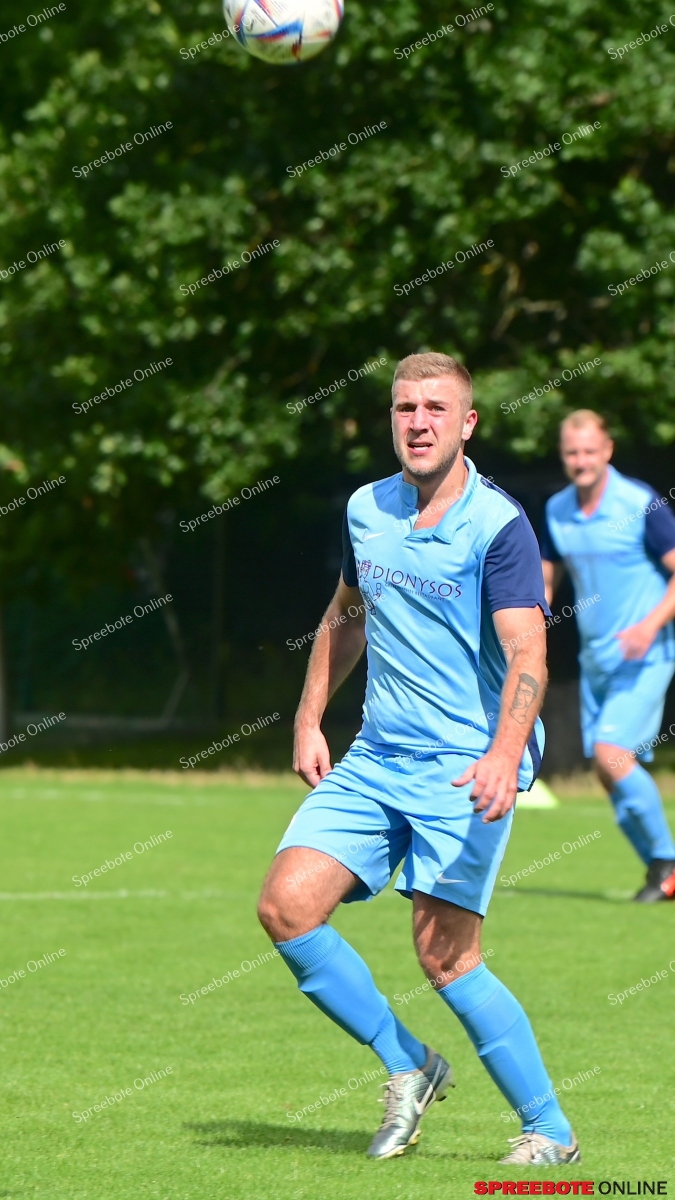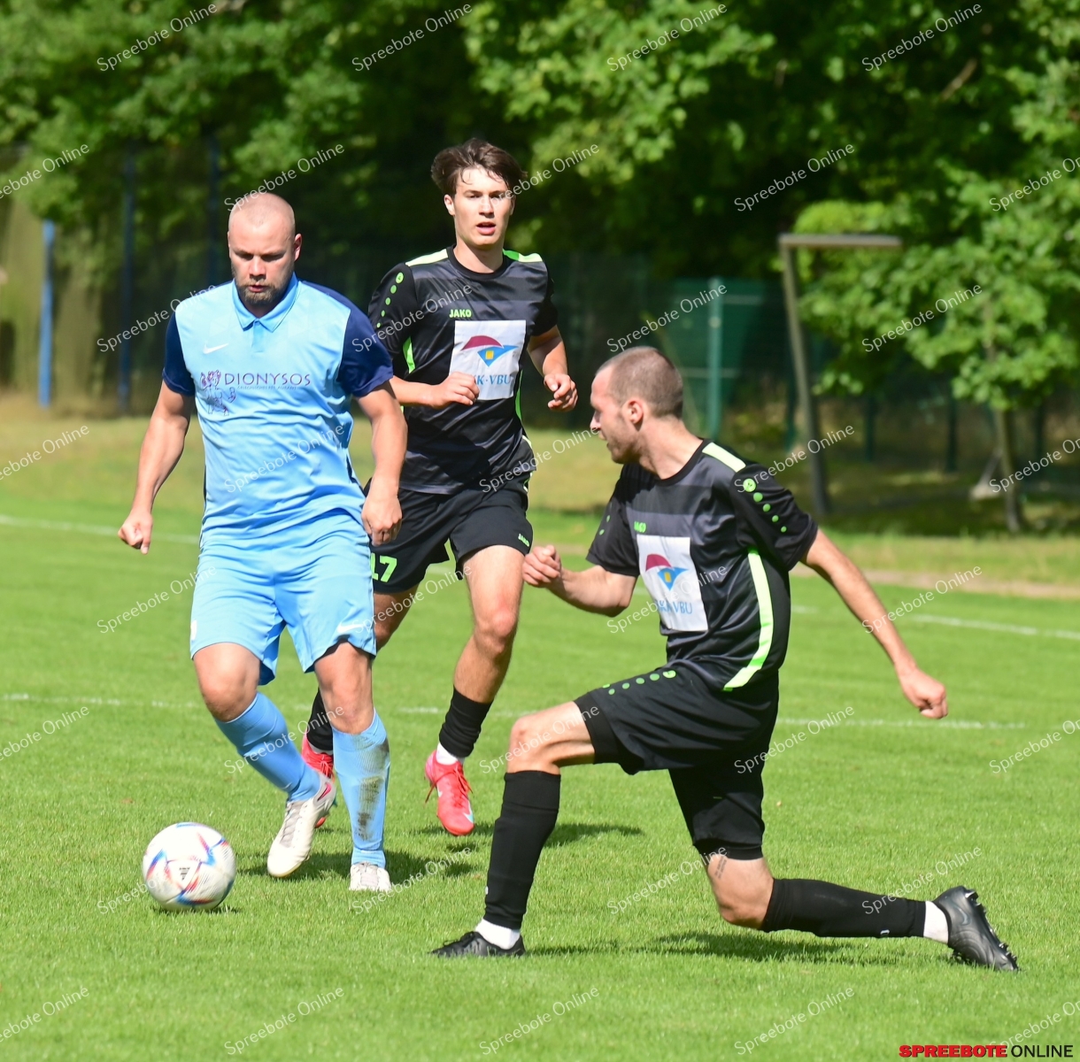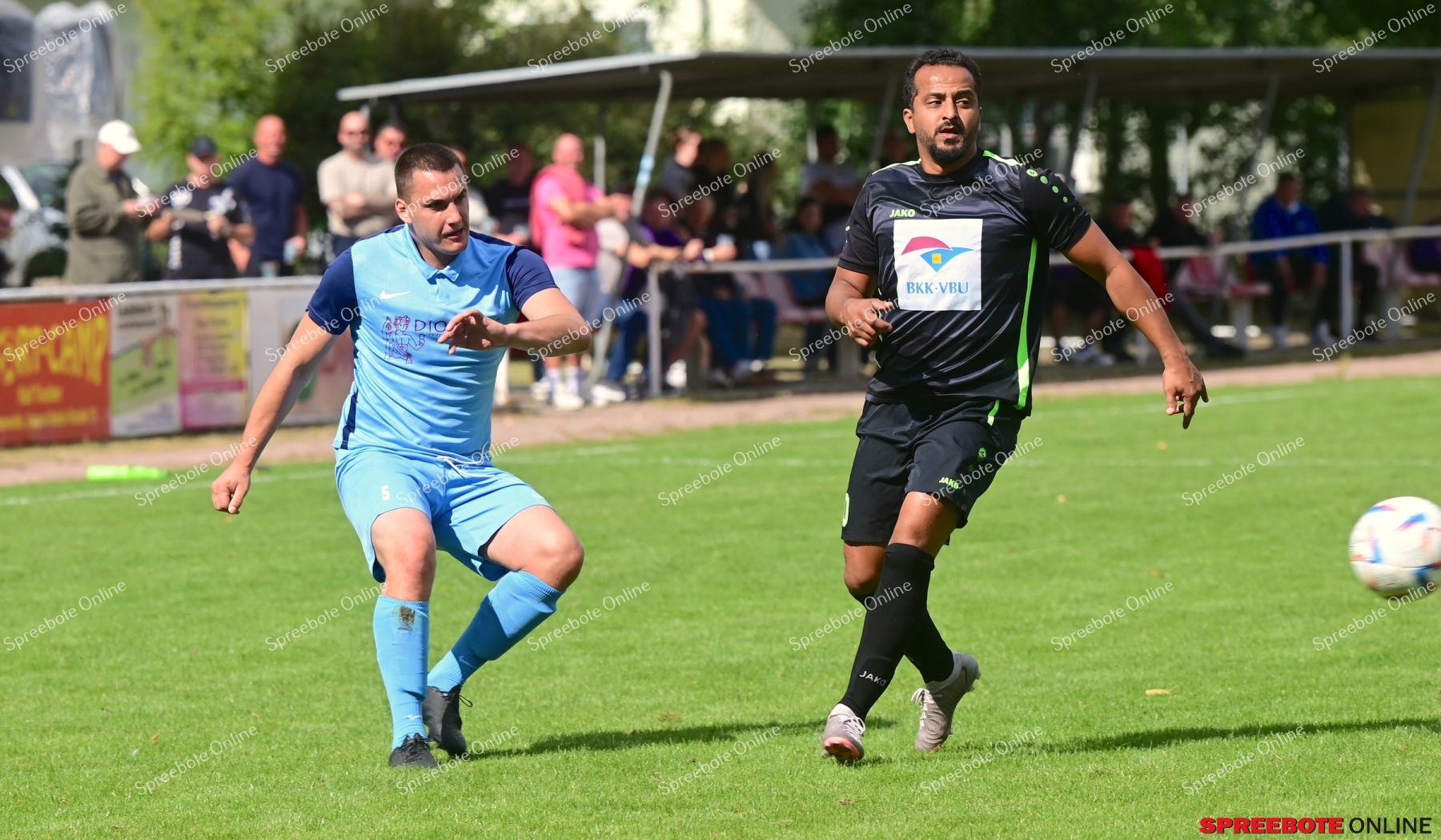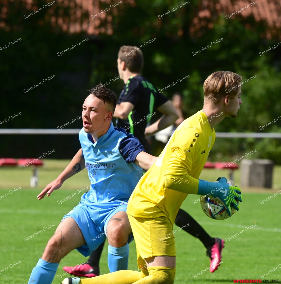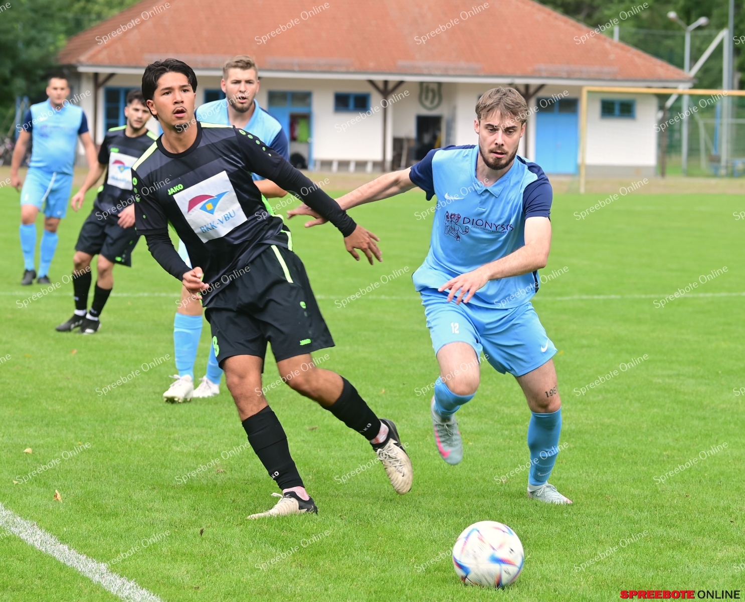 Zum Saisonauftakt der Ostbrandenburg-Liga begrüßte die SG Hangelsberg den FV Erkner II im heimischen Stadion. Das Spiel unter der Leitung von Schiedsrichter Tillmann Henkel nahm direkt Fahrt auf – ein langes Abtasten, wie es zu Saisonbeginn oft üblich ist, blieb hier eher die Ausnahme. Erkner, jung, laufstark und unermüdlich in seinen Angriffsbemühungen, versuchte früh, Druck aufzubauen und Hangelsberg zu Fehlern zu zwingen. Doch sie bissen sich, sprichwörtlich die Zähne aus – Gian Paul Bezill, der Keeper der Gastgeber, hatte seinen Tag. Ähnlich wie Sirko Gallisch in Briesen war auch hier kein Durchkommen und setzten vorerst kein Fuß aufs Tableau. Hangelsberg zeigte sich stabil, löste sich immer wieder erfolgreich aus der Umklammerung und spielte zielstrebig nach vorn. Gute Ansätze über die Flügel und durch die Mitte waren da – aber das Spiel blieb über weite Strecken im Mittelfeld stecken.