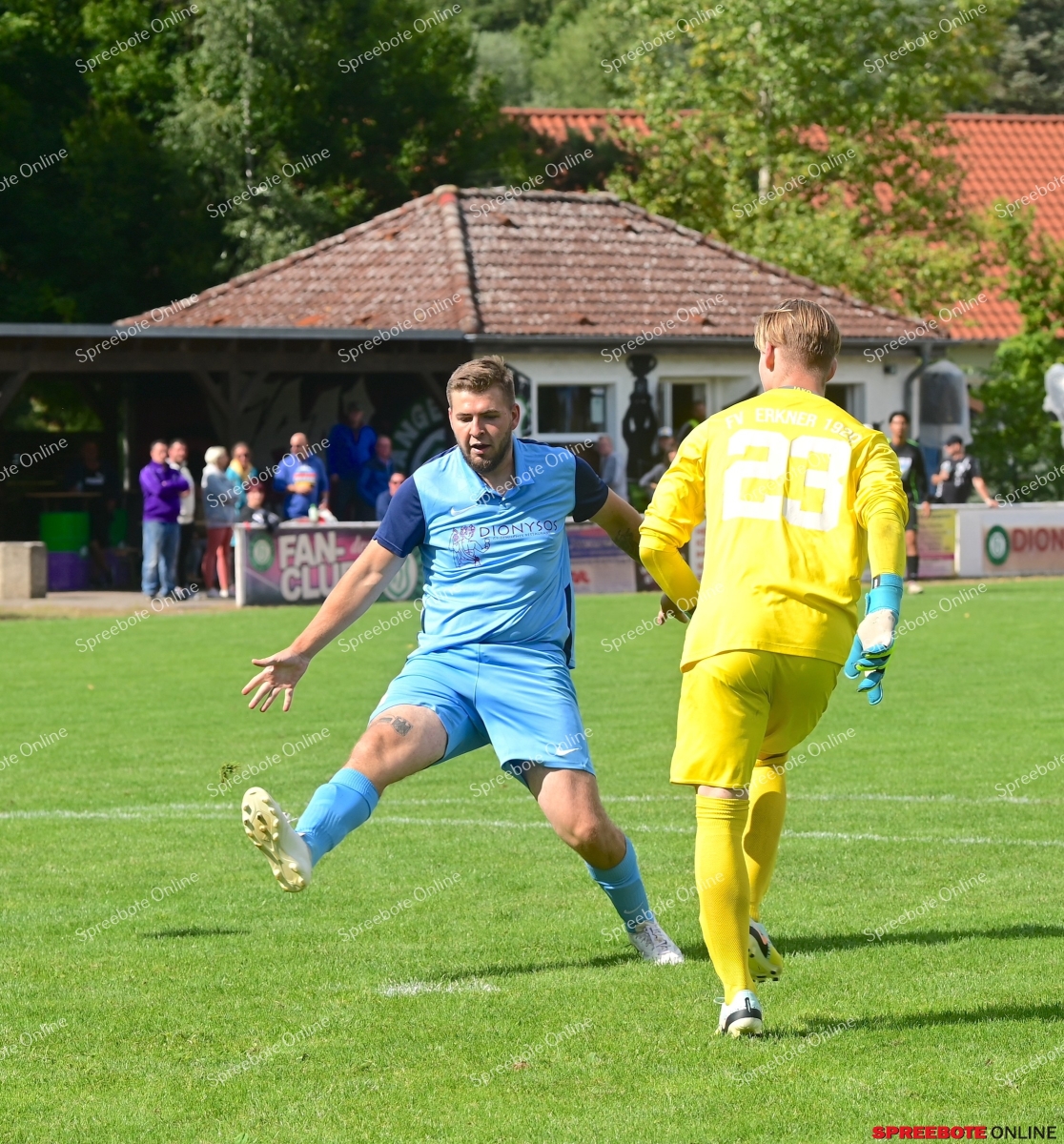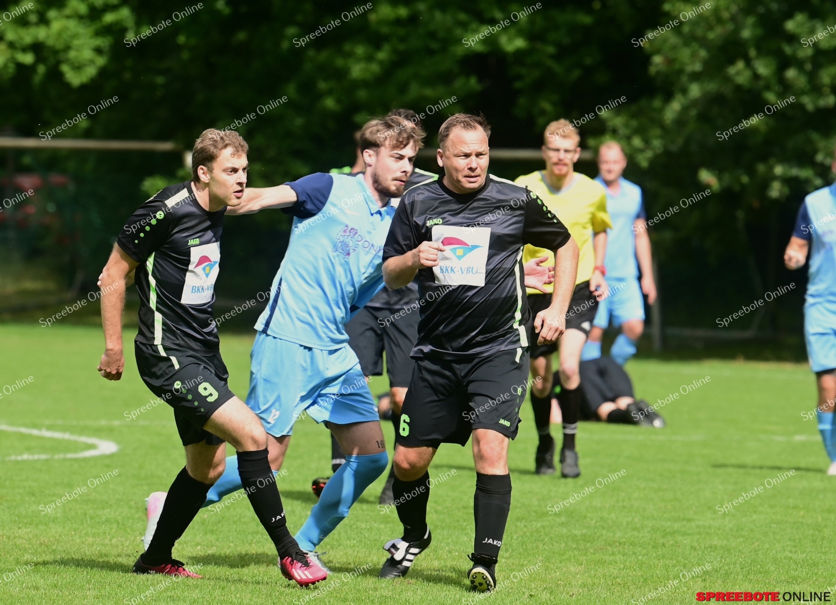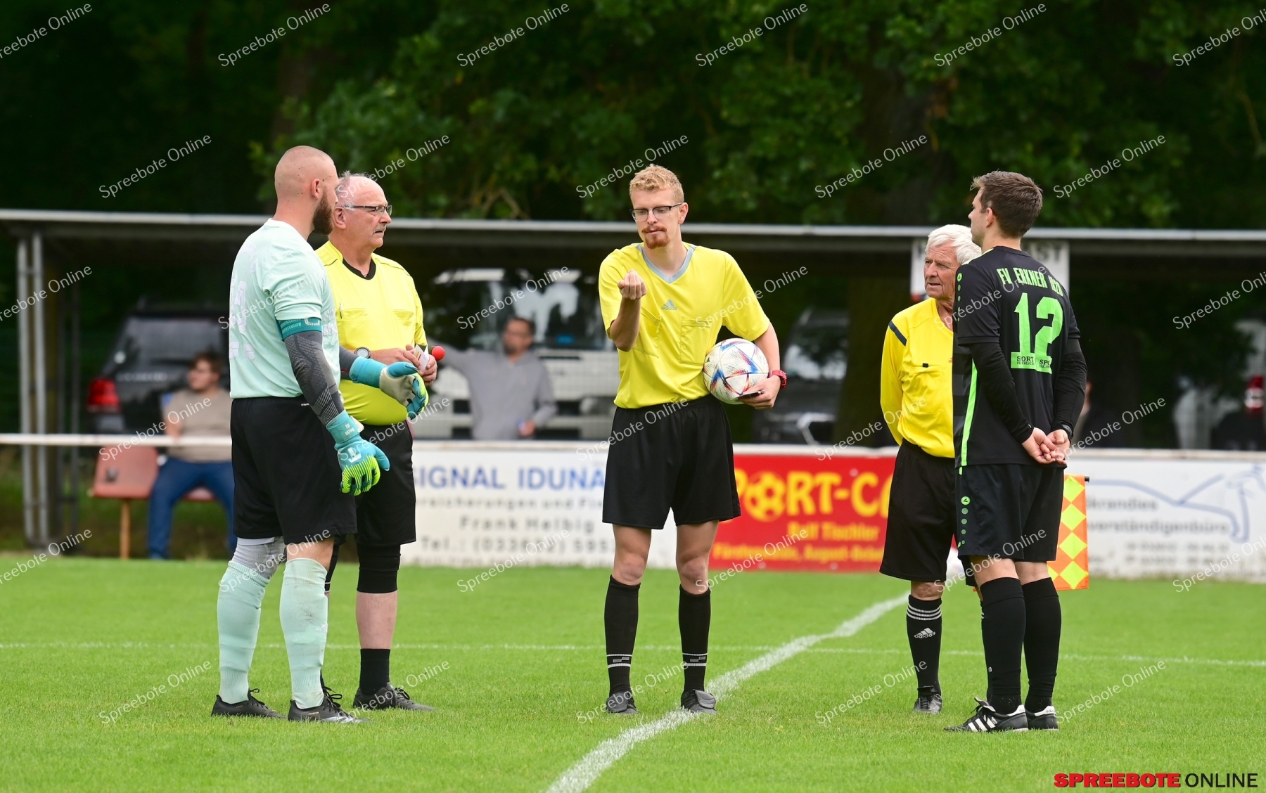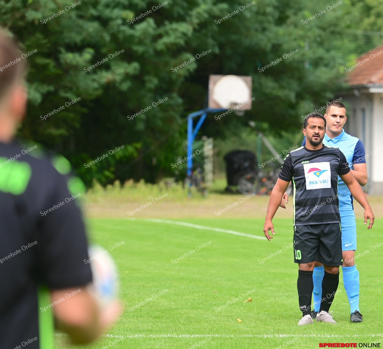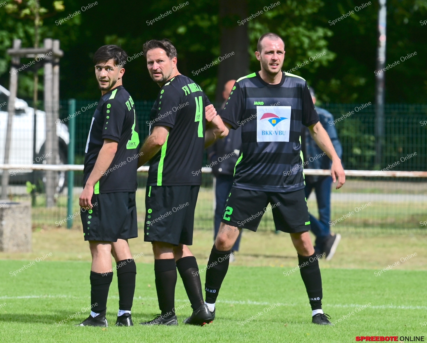 Zum Saisonauftakt der Ostbrandenburg-Liga begrüßte die SG Hangelsberg den FV Erkner II im heimischen Stadion. Das Spiel unter der Leitung von Schiedsrichter Tillmann Henkel nahm direkt Fahrt auf – ein langes Abtasten, wie es zu Saisonbeginn oft üblich ist, blieb hier eher die Ausnahme. Erkner, jung, laufstark und unermüdlich in seinen Angriffsbemühungen, versuchte früh, Druck aufzubauen und Hangelsberg zu Fehlern zu zwingen. Doch sie bissen sich, sprichwörtlich die Zähne aus – Gian Paul Bezill, der Keeper der Gastgeber, hatte seinen Tag. Ähnlich wie Sirko Gallisch in Briesen war auch hier kein Durchkommen und setzten vorerst kein Fuß aufs Tableau. Hangelsberg zeigte sich stabil, löste sich immer wieder erfolgreich aus der Umklammerung und spielte zielstrebig nach vorn. Gute Ansätze über die Flügel und durch die Mitte waren da – aber das Spiel blieb über weite Strecken im Mittelfeld stecken.