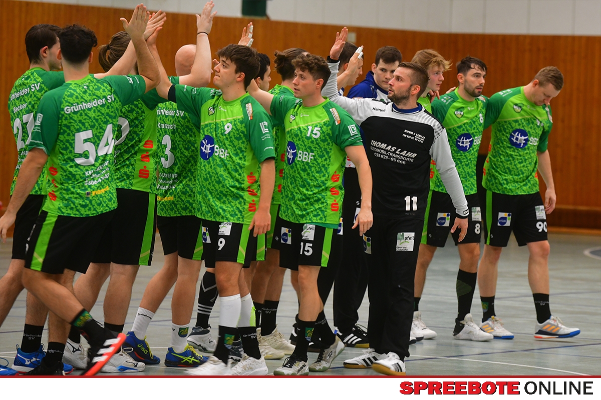 Pflichtaufgabe erfüllt – so hieß es am Ende für die Oberliga-Männer des Grünheider SV I nach dem Landespokal-Achtelfinale beim TSV Germania Massen. Die GSV-Löwen gewannen am vergangenen Samstag, bei dem drei Klassen unter ihnen spielenden Gegner, der aktuell Spitzenreiter in der Landesliga Süd ist, standesgemäß mit 37:25 (19:11). Auch die dritte Männermannschaft, die von Akteuren des GSV II sowie Torwart Robin Menz aus der Ersten unterstützt wurde, ist am selben Tag eine Runde weiter gekommen. Der amtierende Kreispokalsieger besiegte den BSV Grün-Weiß Finsterwalde, Spitzenreiter der Verbandsliga Süd Brandenburgs, in der Löcknitzhalle nach 8:11-Halbzeit-Rückstand noch knapp mit 25:23
