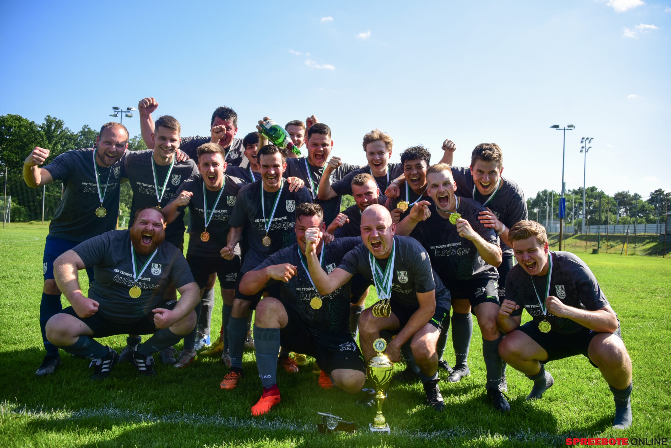 Im vorigen Jahr mussten die Unioner in der 1. Kreisklasse Ostbrandenburg Staffel Süd im Spitzendreikampf die Mannschaft der SG Rauen den Vortritt überlassen und wurden Vize. Am letzten Spieltag dieser Saison (22/23) war der III. Männermannschaft des FSV Union Fürstenwalde die Meisterschaft und der damit verbundene Aufstieg in die Kreisliga nicht mehr zunehmen. Im letzten Saisonspiel stand aber für die Mannschaft als würdiger Abschluss ein Sieg auf dem Programm. Im Heimspiel empfingen die Unioner am Samstagnachmittag die II. Männermannschaft der SG Borussia Fürstenwalde, ein echtes Stadtderby also zum Saisonabschluss. Vor dem Anpfiff vom Schiri Dr. Günther Schachler wurden mit Präsenten drei Spieler der Unioner würdig verabschiedet. Julian Ahnsehl wechselt zum VfB Steinhöfel, und Tim Lehmann fungiert zukünftig als Co – Trainer. Marcus Haufe beendet hingegen seine Karriere. Die über 50 stimmungsvollen Zuschauer sahen dann eine torreiche Partie des Tabellenführers gegen den Vorletzten. Den Torreigen eröffnete dann für die Unioner in der 6. Minute Tim Lehmann. In der 12. Minute traf dann der Borusse Peer Kleppe ins Netz, aber leider ins eigene und so stand es nach dem Eigentor 2:0 für die Unioner. Julian Ahnsehl (15.), Eric Jungnickel (18.), Fabian Riebe (38.) und per Doppelschlag Tim Lehmann in der 41. Und 44. Minute erhöhten dann noch vor dem Pausenpfiff auf 7:0 für den FSV Union. Nach dem Tor von Michel Weimann zum 8:0 in der 54. Minute, war es dann erneut ein Borusse (Christopher Driebusch) welcher in der 65. Minute den nächsten Treffer Eigentor) für die Unioner erzielte. Tim Patze (72.) und Marcus Haufe (76.) erzielten dann die nächsten Treffer für Union. Mit der letzten Aktion unter großen Jubel der Union Fans und Mannschaftskollegen erzielte dann in der 90. Minute Michel Weimann das Tor zum 12:0 für den FSV Union. Gleich nach dem Spiel war vom Kreisfußballverband Reinhard Klopsteg zur Stelle und überreichte der III. Männermannschaft des FSV Union Fürstenwalde den Meisterpokal und den Spielern die Gold Plaketten. Unions Präsident Richter übergab auch gleich noch ein Präsent der erfolgreichen Siegermannschaft. In der kommenden Saison heißt es also für die Mannschaft eine Klasse höher Kreisligaspiele zu absolvieren wofür man allen Beteiligten weiterhin viel Erfolg wünscht.
